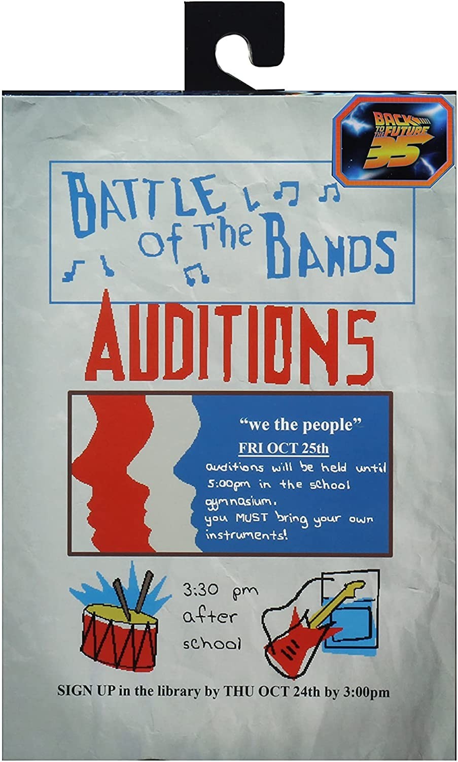 Revive uno de los momentos más divertidos de la primera parte de "Regreso al Futuro" con esta figura articulada de Marty McFly de 18 cms. Esta pieza representa a Marty en la audición de la batalla de las bandas, pero incluye accesorios, como la mano semi translúcida y la foto familiar, que mezclan esta escena con el momento en el que empieza a desaparecer del final de la película. Esta figura de Neca y con licencia oficial de Universal incluye walkman, octavilla del reloj de la torre, foto familiar, dos manos intercambiables, guitarra, y una cabeza intercambiable. ¡Colecciona las 6 figuras del 35 aniversario de esta icónica cinta y prepárate para viajar en el tiempo!