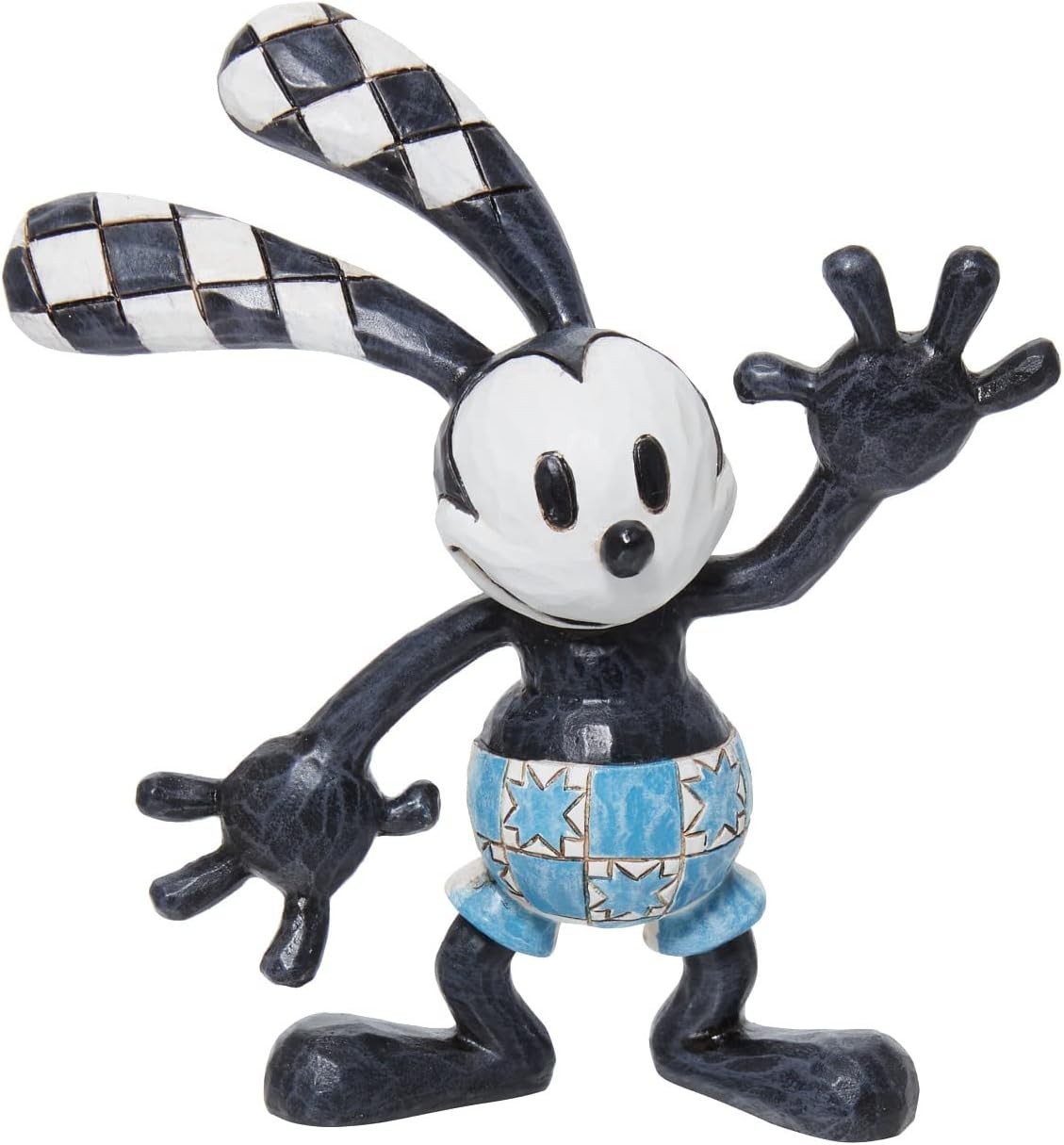 Oswald es el conejo afortunado, protagonista de una serie norteamericana que fue creada por Walt Disney y Ub Iwerks en 1927. Ahora, la prestigiosa marca Enesco, que se ha ganado un hueco en el corazón (y en las estanterías) de todos los coleccionistas de figuras, nos trae la figura de 8,5 cms decorativa de Oswald. Está hecha de resina y ha sido pintada a mano con una atención al detalle primorosa. Pertenece a la línea Disney Traditions, y, además, tiene un rediseño que le ha añadido detalles decorativos a la figura al mismo tiempo que mantiene su esencia clásica. Viene dentro de una elegante caja de color burdeos con ventana expositora. ¿Listo para pasar a la historia de la animación?