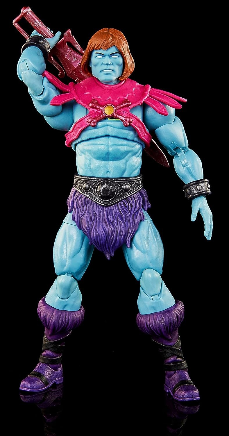 Cuidado, porque el bien puede tener su copia exacta al servicio del mal… así le ocurrió a He-Man, el legendario héroe del planeta Eternia. Su réplica malvada, llamada Faker, colaboraba con Skeletor, archienemigo de He-Man y hostigador de los siervos del bien. Celebra esta famosa saga de fantasía espacial con Mattel y el figurón de 18 cms de Faker. Está basado en la apariencia que el personaje tenía en Masters Of The Universe: New Eternia, y pertenece a la línea del Masterverse, por lo que viene en una caja temática brutal de colores azul y gris y con ventana expositora transparente. Además, viene con accesorios como hacha, espada y dos manos intercambiables. ¡Que empiece la épica batalla por Eternia!