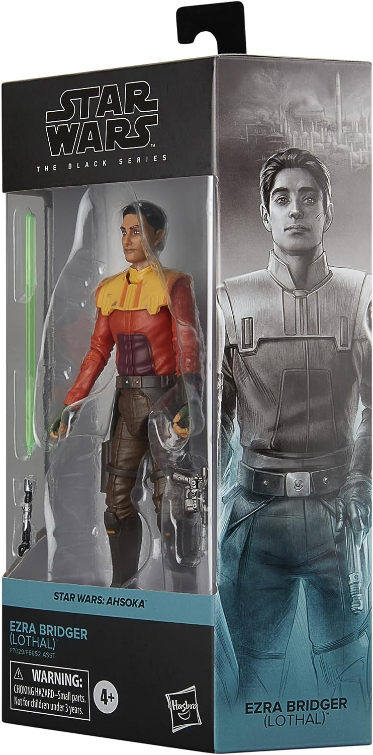 Huérfano y criado en la calle, Ezra Bridger acabaría siendo uno de los Jedi más reconocidos por los fans de Star Wars. En la serie “Ahsoka”, creada por Dave Filoni para Disney +, Ezra es uno de los personajes principales que se unen a la protagonista, interpretada por Rosario Dawson, en su cruzada contra Thrawn. Hasbro nos trae la figura articulada de 15 cms de Ezra. Pertenece a la línea Black Series e incluye un sable de luz y un bláster láser. Está hecho de PVC de gran calidad llegado del borde exterior.