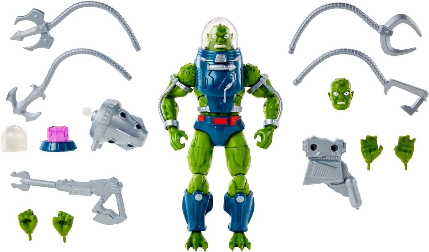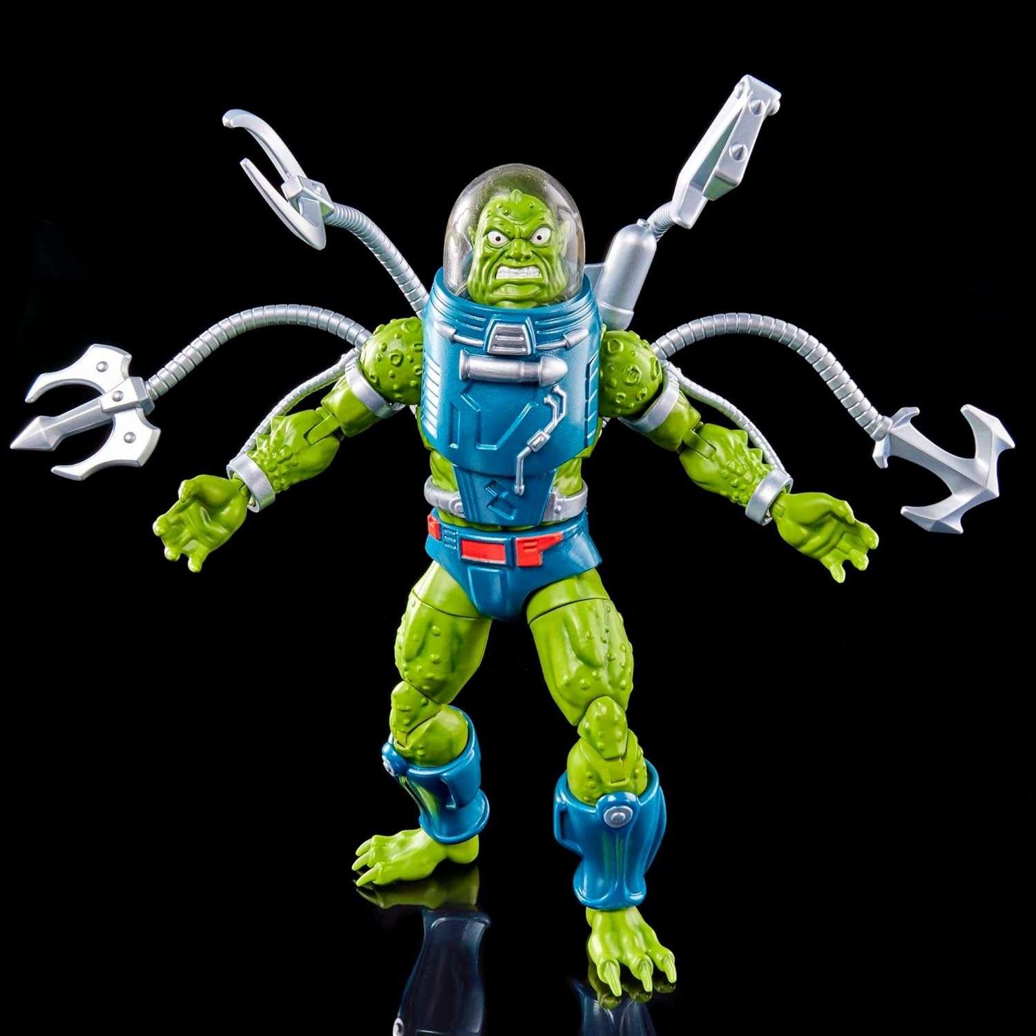 También llamado Kalamaar, Slush Head, pese a que no es ‘la farola que más alumbra de su barrio’, es el líder de los mutantes y uno de los más leales aliados de Flogg. Como aliado de Skeletor, Slush Head es una amenaza a tener en cuenta para He-Man y sus amigos. La figura articulada de Slush Head que nos trae Mattel, pertenece a la línea He-Man Masterverse, de la legendaria saga Masters of the Universe. Mide 18 cms e incluye una miríada de accesorios como cuatro manos intercambiables, cabeza adicional, tres armas plateadas de mano y cuatro brazos mecánicos de calamar. Viene en una caja temática que celebra el legado de esta franquicia de fantasía ambientada en las profundidades del espacio y en la superficie del planeta Eternia.