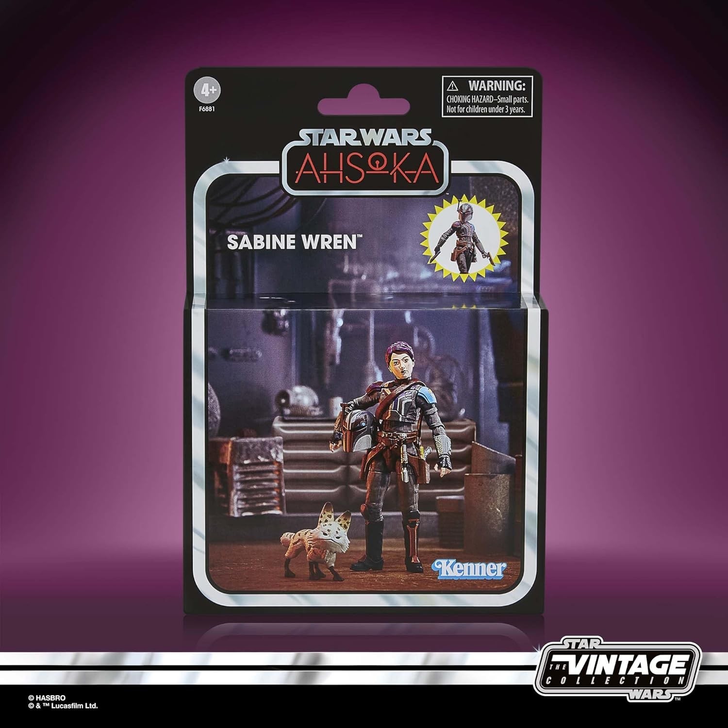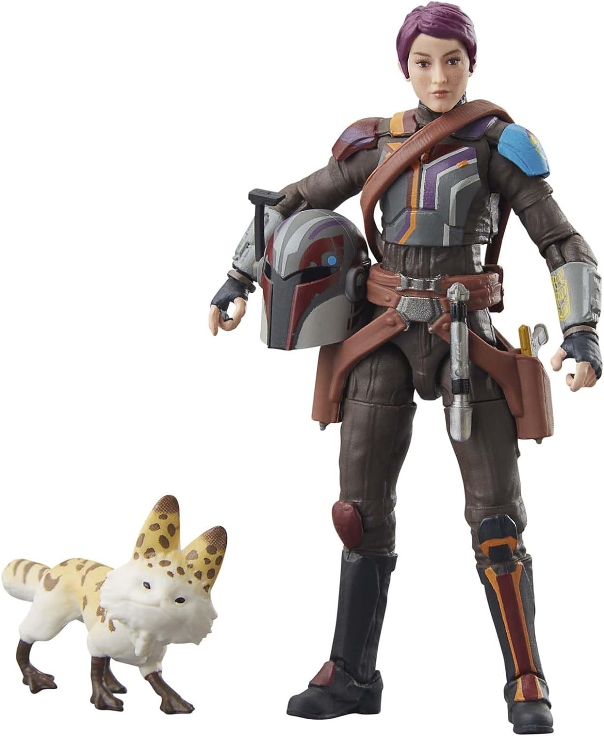 La figura de 9,5 cms de Sabine Wren, de la serie "Ahsoka", creada por Dave Filoni, es un tributo excepcional a esta carismática guerrera mandaloriana. Detallada meticulosamente, captura su apariencia y estilo únicos, incluyendo su característico casco pintado. La figura pertenece a la Vintage Collection de Hasbro y Kenner. Para los fans de "Ahsoka" y "Star Wars", esta figura es una adición imprescindible a su colección, permitiendo revivir las emocionantes aventuras de la serie. Incluye accesorios como: mascota, sable de luz encendido y apagado, casco, bolsa de viaje, dos blásters láser y comunicador.