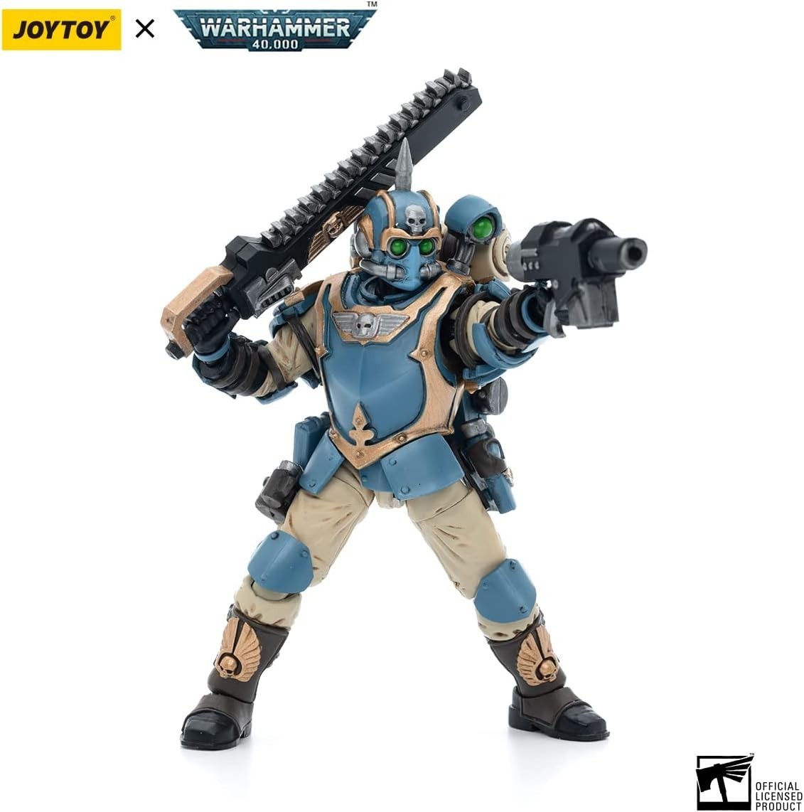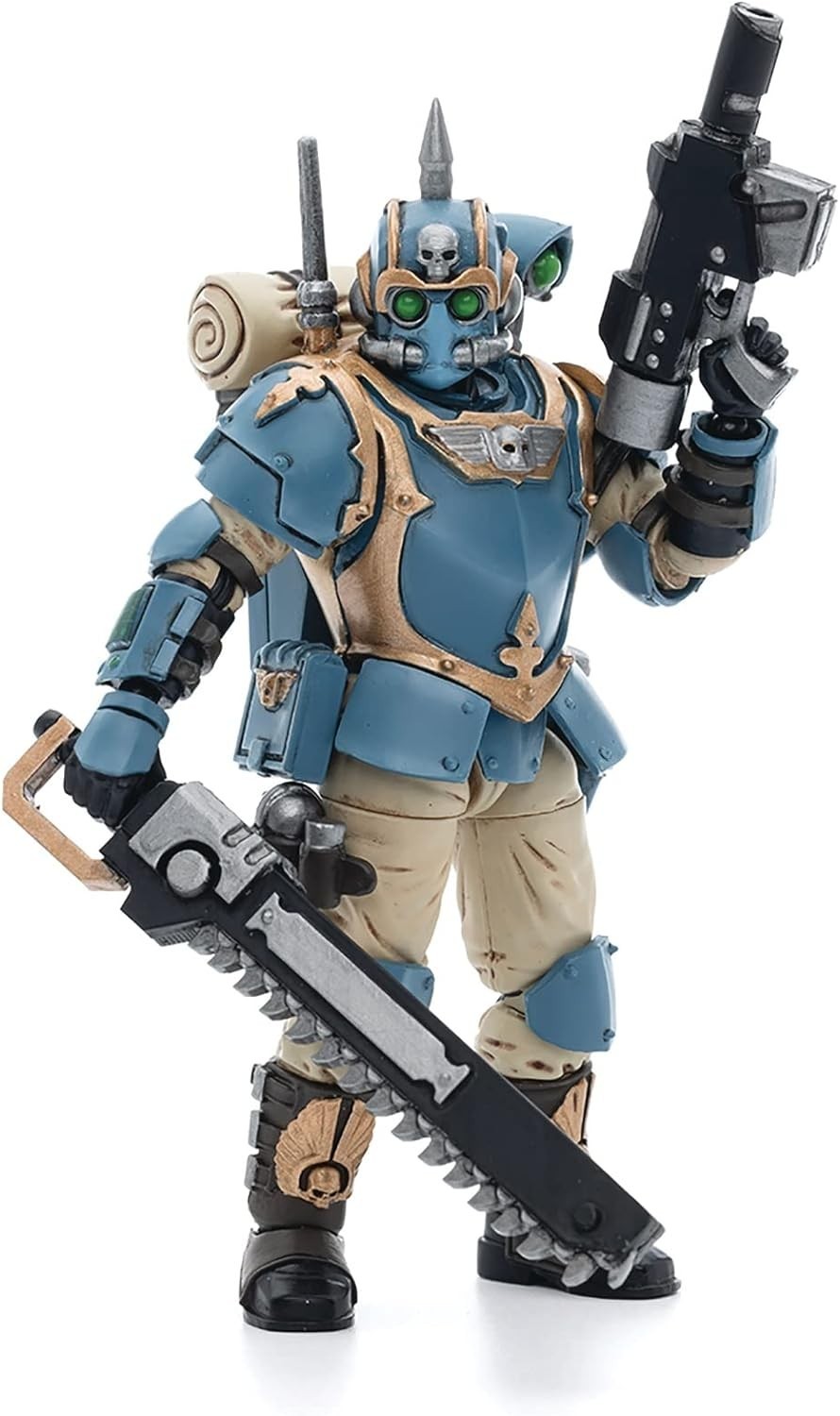 Directo desde el universo de fantasía y épica y épica galáctica de Warhammer 40.000, nos llega este figurón de 12 cms del Astra Militarum 55th Kappic Eagles Tempestus Scions Tempestor. Incluye 7 accesorios como cuatro manos adicionales, un rifle, un jet-pack y una espada-sierra. Es un producto de licencia oficial de Warhammer 40.000 hecho por Joy Toy a escala 1/18 y hecho de PVC pintado con una atención al detalle excelsa y digna de los mejores comandos espaciales. Que empiece la batalla…
