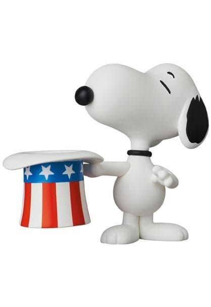 El perrito Snoopy es un auténtico icono de las viñetas y la cultura popular. Y ahora se junta con otro gran icono de la cultura, el Tío Sam. Snoopy lleva el sombrero de Uncle Sam, uno de los símbolos de Estados Unidos. Esta figura de 8 cms está hecho de PVC y es una creación de Medicom. Viene en un blíster con la bandera americana porque rinde tributo precisamente a eso, al estilo e icnografía americana.