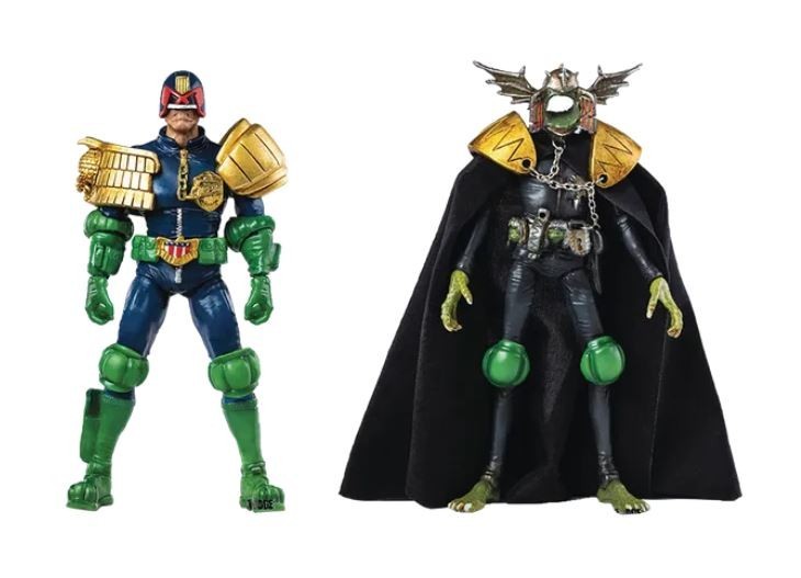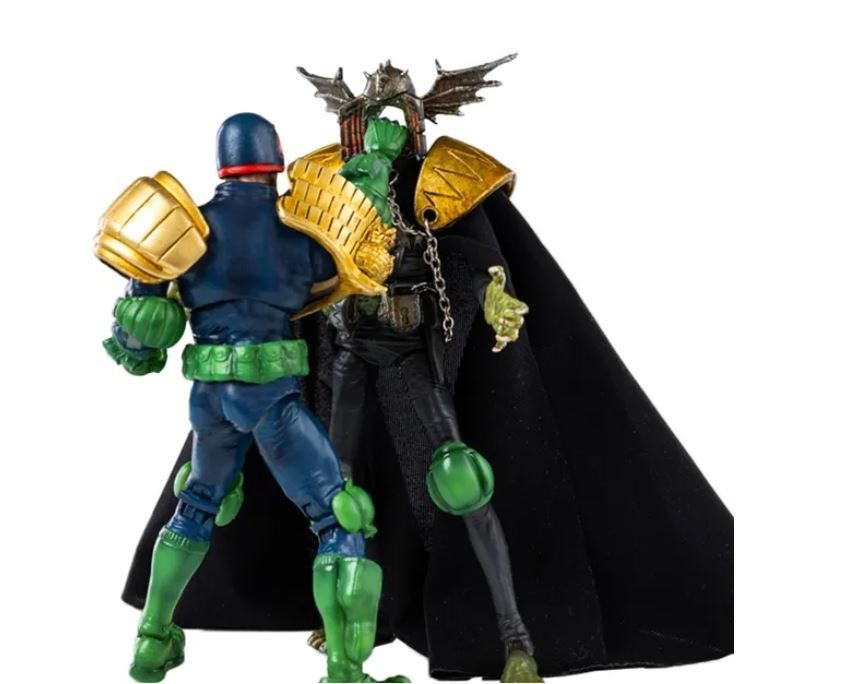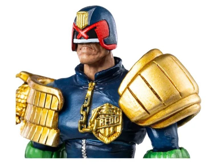 Juez Dredd es el azote del crimen en Mega-City. ¿Es el único? No, Dredd forma parte del cuerpo de Jueces que ejercen a efectos prácticos como policías, jueces, jurados y verdugos. Se dedican a patrullar la enorme ciudad distópica, cazando a criminales y malhechores y ejerciendo una justicia inmediata que limpie las calles de un mal rampante. La marca Hiya ha viajado hasta los dominios del Juez para hacerse con estas dos figuras de 10 cms de Dredd llamada “Gaze into the fist of Dredd”. Incluyen peana de exposición, y recrea una de las viñetas de los cómics creados por John Wagner y Carlos Ezquerra. Dredd está golpeando con su puño todopoderoso a un villano. Viene en una caja temática con ventana de exposición y tapa que se abre y se cierra. Incluye también, en el reverso de la tapa, las viñetas de cómic en las que se basa. Pertenece a la línea de figuras Exquisite Mini y está hecha de PVC.