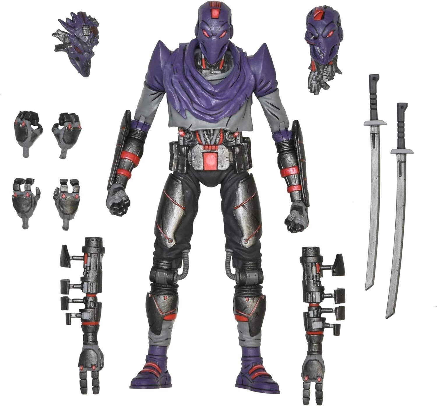 Neca y su línea Reel Toys se han adentrado en el Nueva York futurista asediado por batallas y bandas de The Last Ronin, para traerte una figura articulada de FootBot. Este personaje enmascarado, maestro espadachín y ninja, es una adición fantástica para cualquier coleccionista de Las Tortugas Ninja. Basada en los cómics de Eastman y Laird, este personaje tiene un estilo ligeramente cartoon que rinde tributo a los cómics en los que aparece. Está hecha de PVC e incluye accesorios como dos katanas, dos cabezas adicionales, dos armas, y tres pares de manos intercambiables. Todo ello viene en una espectacular caja temática con tapa y ventana de exposición.