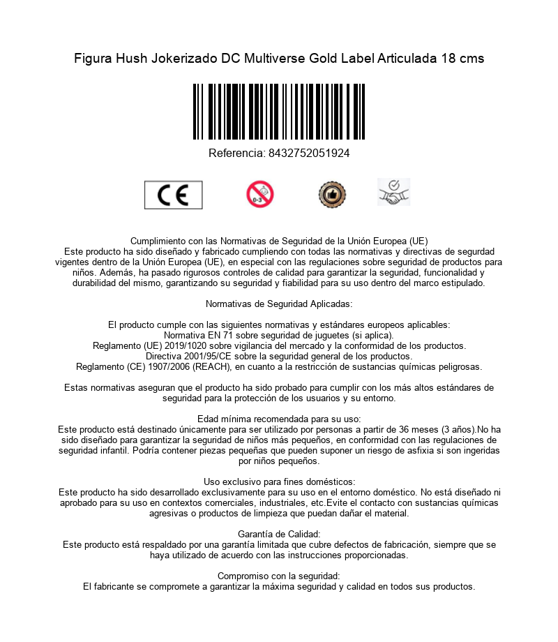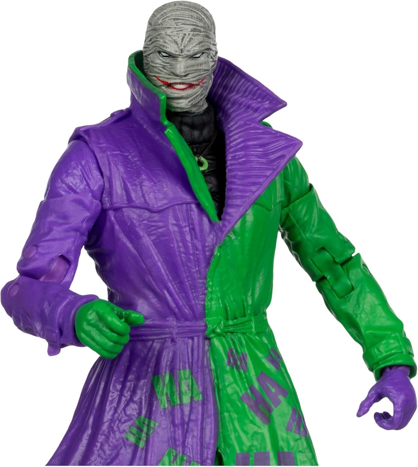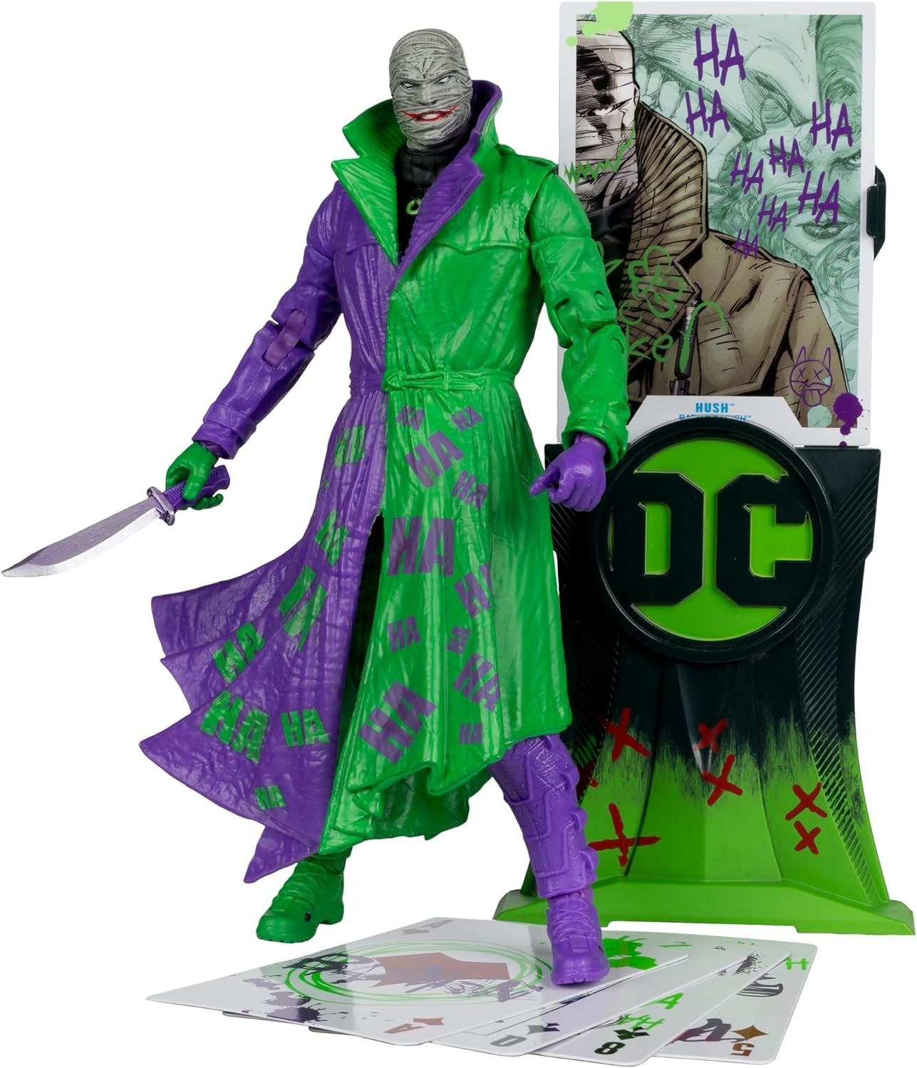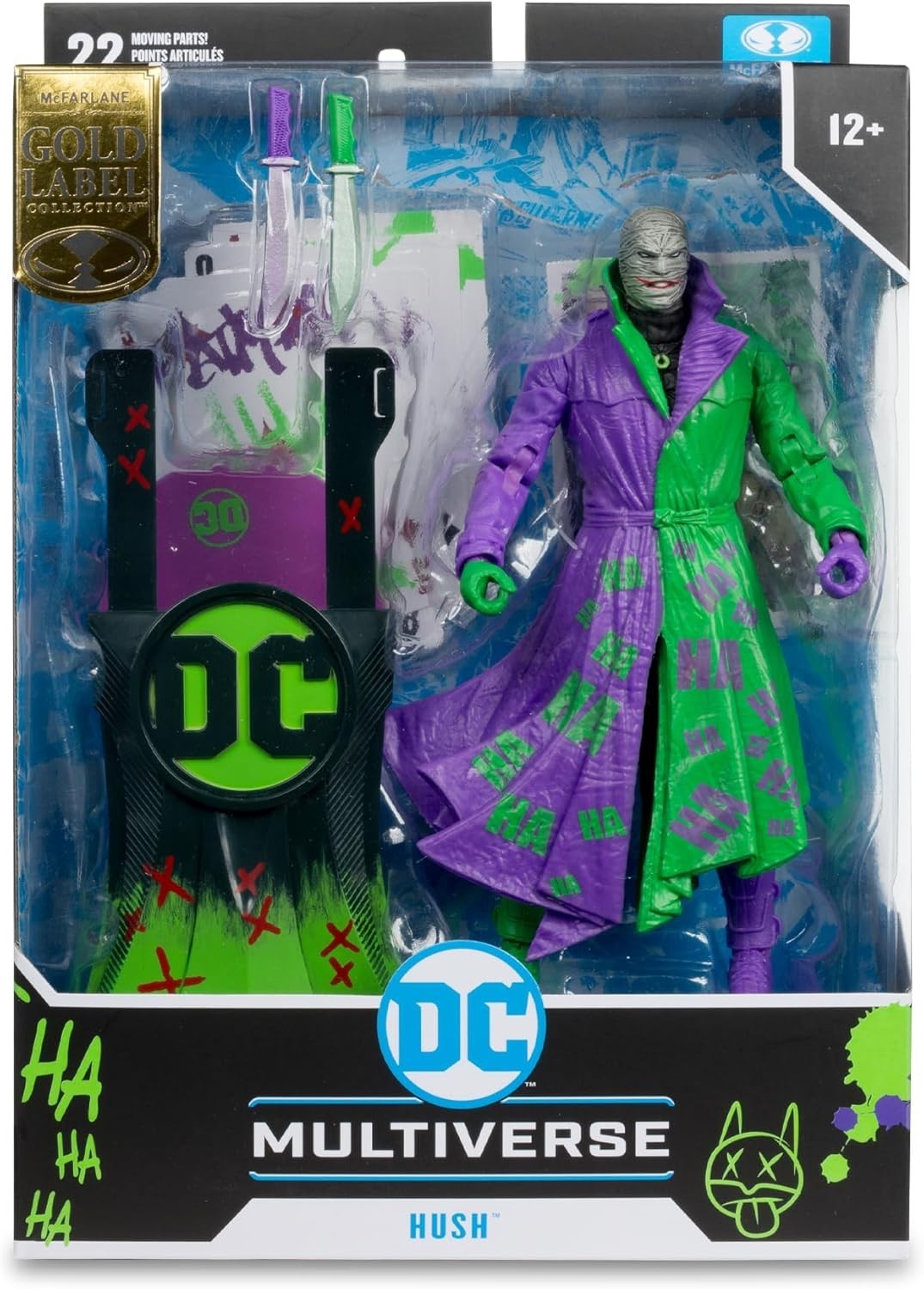 ¡La locura y el caos llegan a tu colección con esta espectacular figura de Hush Jokerizado de McFarlane Toys, parte de la exclusiva línea Gold Label del DC Multiverse ! Con una altura de 18 cms, esta figura articulada captura al Joker en su versión más inquietante, inspirada en el icónico cómic Hush . Presenta un diseño detallado, con sus vendas misteriosas y su gabardina, que lo hacen destacar como uno de los villanos más temibles del universo DC. Esta pieza no solo es impresionante visualmente, sino que viene equipada con varios accesorios que aumentan su presencia y acción. Incluye dos cuchillos afilados, perfectos para que Hush despliegue su locura, además de cuatro naipes, haciendo referencia a su característico amor por el caos. La figura también viene con una peana de exposición para que la puedas mostrar en todo su esplendor, y una tarjeta coleccionable que celebra su papel en el cómic Hush . La tarjeta también tiene su propia peana, lo que le da un toque elegante y funcional a tu exhibición. Con su increíble nivel de detalle y los accesorios incluidos, esta figura de Hush Jokerizado es una pieza imprescindible para cualquier fanático de los villanos de Gotham y un verdadero tesoro para los coleccionistas. ¡No dejes pasar la oportunidad de tener al misterioso villano en tu estantería!