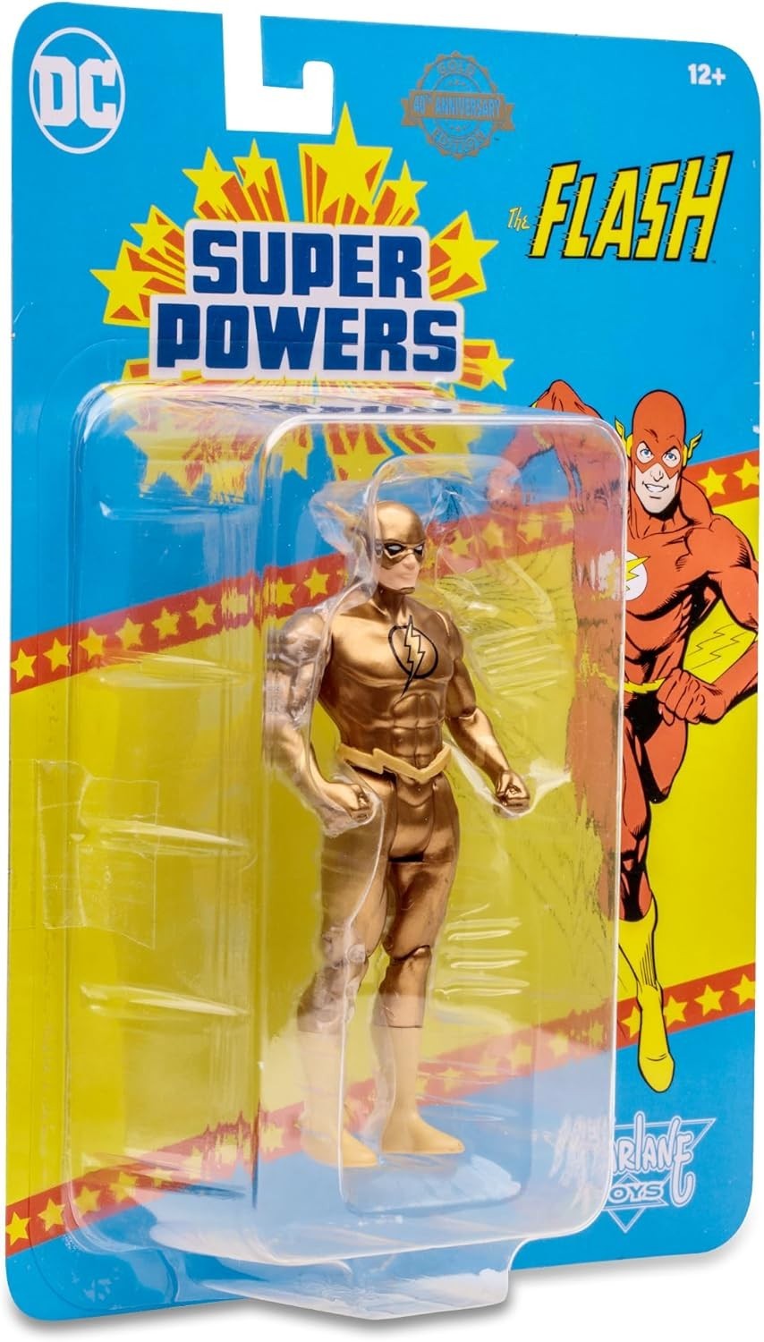 ¡La Fuerza de la Velocidad brilla como nunca con esta impresionante figura de The Flash DC Super Powers en su versión dorada! Creada por McFarlane Toys, esta pieza de 12 cms hecha de PVC captura la esencia del Velocista Escarlata, pero con un espectacular acabado dorado que resalta su grandeza y poder. Inspirada en la legendaria colección Super Powers, esta figura combina diseño clásico con detalles modernos, asegurando que cada fan de DC pueda agregar a su colección una versión única del héroe más rápido del mundo. Con su icónico emblema en el pecho, detalles esculpidos con precisión y una capa de pintura metálica brillante, esta edición especial de Flash es una joya visual. Gracias a sus puntos de articulación estratégicos, puedes recrear sus poses más dinámicas, como si estuviera listo para romper la barrera del sonido. Su diseño ligero pero resistente hace que sea ideal tanto para exhibición como para recrear las aventuras más emocionantes del Universo DC. ¡No dejes que esta figura dorada de The Flash se escape! Una pieza imprescindible para coleccionistas y fanáticos de la velocidad y la justicia. ¿Estás listo para sentir el poder de la Fuerza de la Velocidad?
