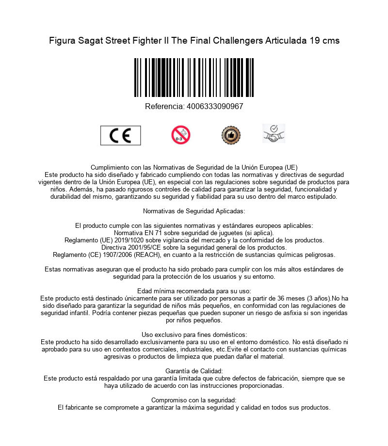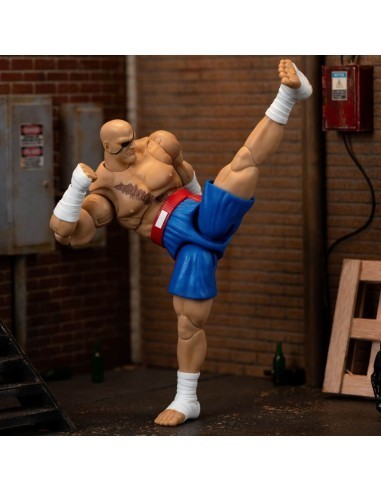 ¡Llega a tu colección uno de los guerreros más temibles del mundo de los videojuegos! La figura de Sagat de Street Fighter II: The Final Challengers , creada por Jada Toys con licencia oficial de Capcom, es una bestia imponente de 19 cms de altura, diseñada para dominar tu vitrina… y cualquier arena de combate. Con un nivel de detalle que captura cada cicatriz, músculo y la intensidad de su mirada, esta figura articulada encarna el poder y el orgullo del legendario emperador del Muay Thai. Incluye una cabeza adicional con una expresión más agresiva, dos manos intercambiables para golpes o poses defensivas, y un efecto de poder translúcido que recrea su devastador ataque Tiger Shot, listo para lanzarse contra sus rivales. Además, se acompaña de una peana transparente, ideal para exhibiciones dinámicas, saltos o impactos espectaculares, permitiendo recrear con fidelidad escenas icónicas del juego o batallas personalizadas. Sagat no es solo una figura: es presencia, historia y furia en estado puro. Un imprescindible para cualquier fan de Street Fighter y coleccionista que quiera añadir a su estantería a uno de los jefes más memorables de la saga. ¡Prepárate para enfrentar el rugido del tigre!