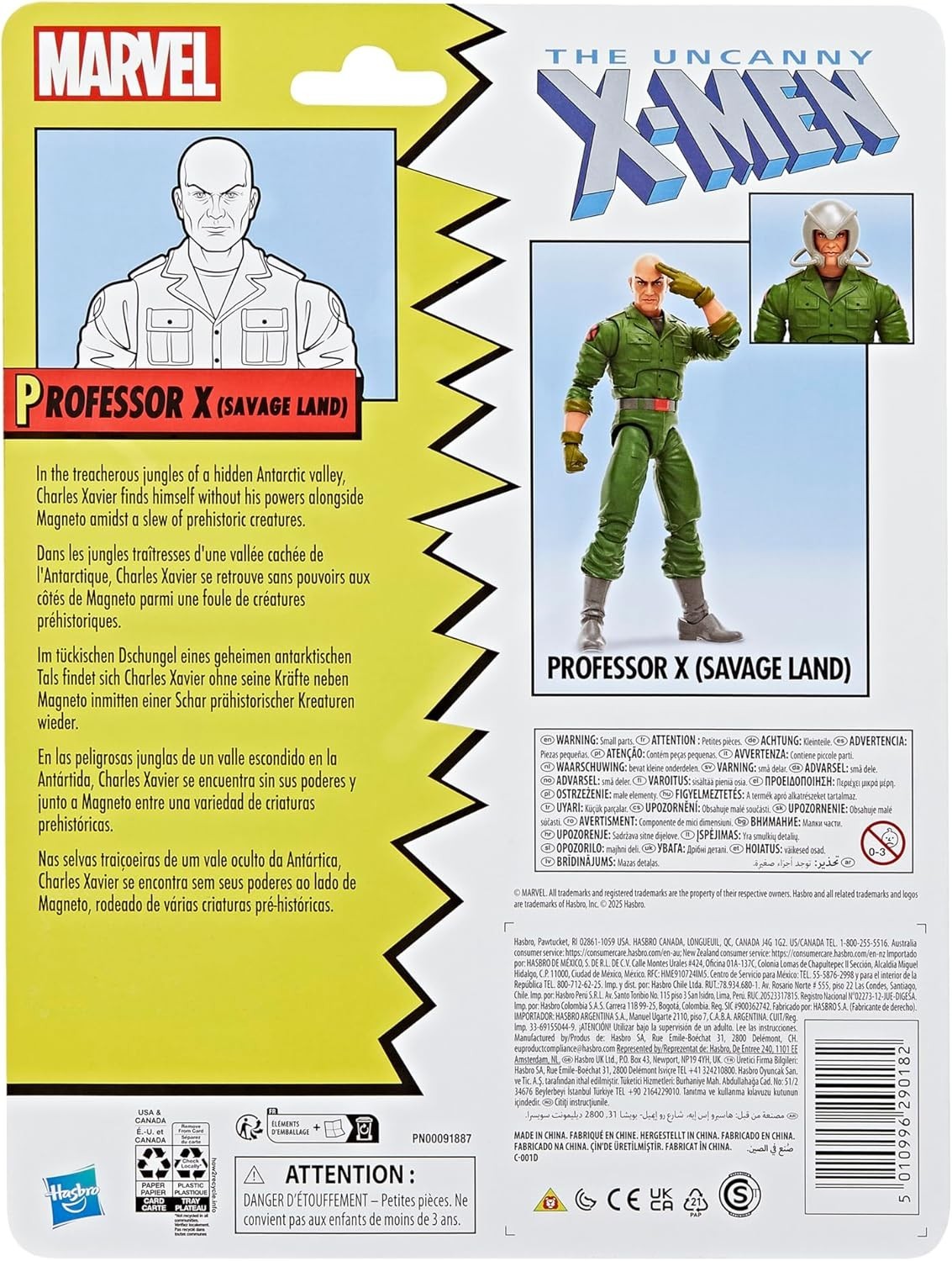 ¡Prepárate para desatar el poder oculto del líder mutante más icónico con esta figura de colección de The Uncanny X-Men de Hasbro! Presentamos al Profesor X en su versión Savage Land, una edición especial de 15 cms que reimagina al fundador de los X-Men como nunca antes lo habías visto: salvaje, audaz y listo para la acción cuerpo a cuerpo. Esta figura articulada, meticulosamente detallada, captura a Charles Xavier en una faceta feroz, alejado de su clásica imagen en silla de ruedas. En la inhóspita y peligrosa Tierra Salvaje, Xavier se convierte en guerrero, liderando con mente y músculo. El set incluye tres manos intercambiables para poses dinámicas y de combate, y el emblemático casco de Cerebro, que permite canalizar sus vastos poderes telepáticos incluso en los entornos más extremos. Cada línea en su rostro, cada pliegue de su indumentaria selvática, transmite la intensidad de un hombre que ha trascendido sus límites. Esta figura no solo es una pieza de colección: es una historia viva, una batalla entre la mente y la bestia. Perfecta para los fans más exigentes de los X-Men, ¡esta es la encarnación más épica del Profesor X que jamás hayas tenido en tus manos!