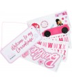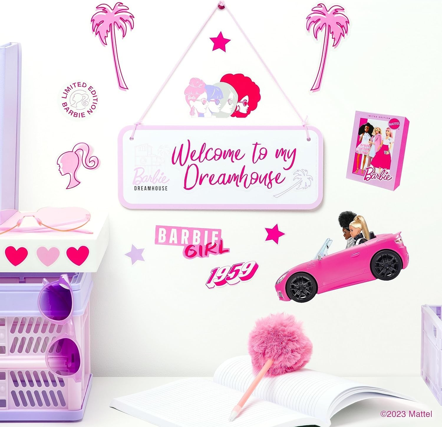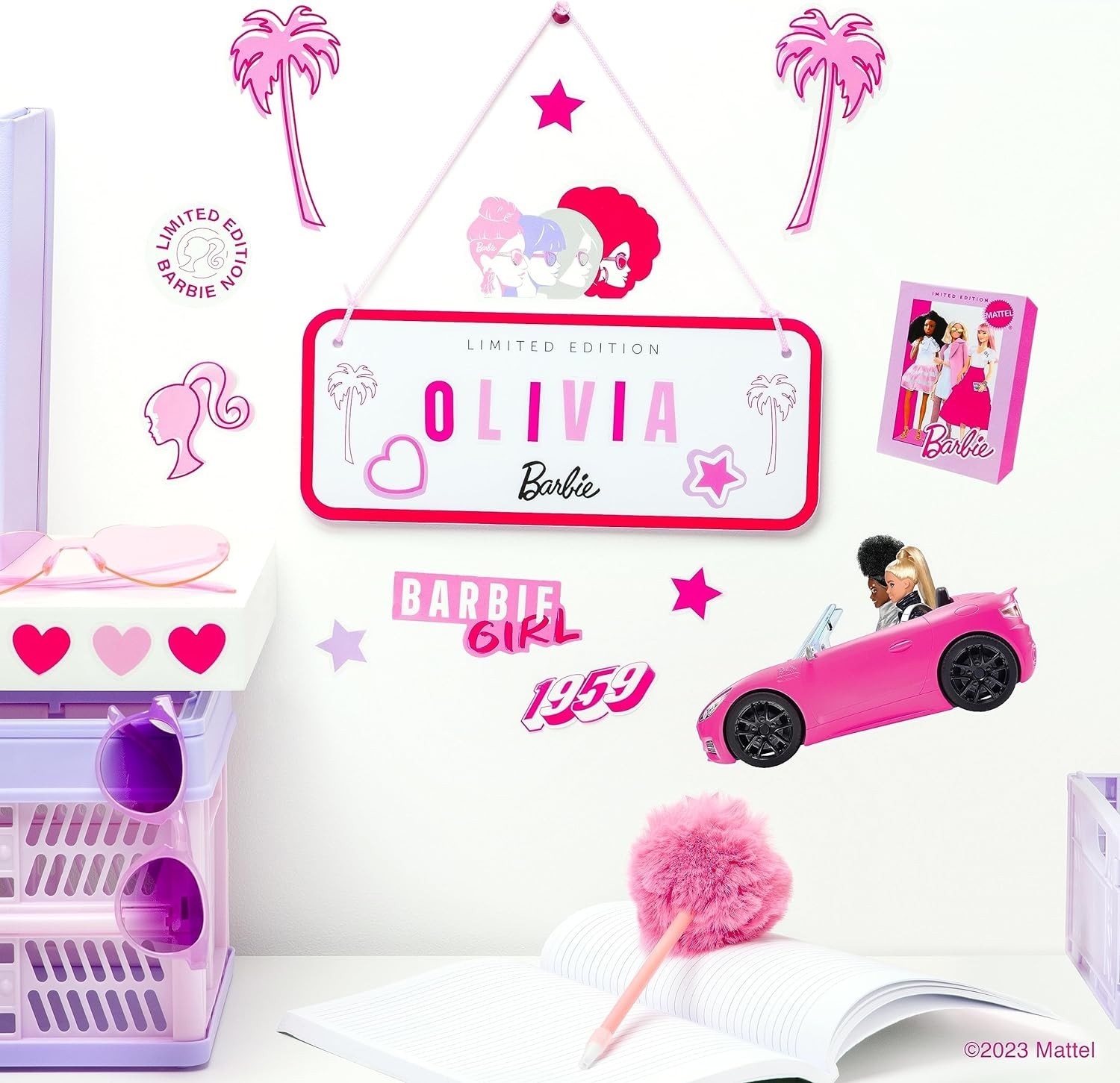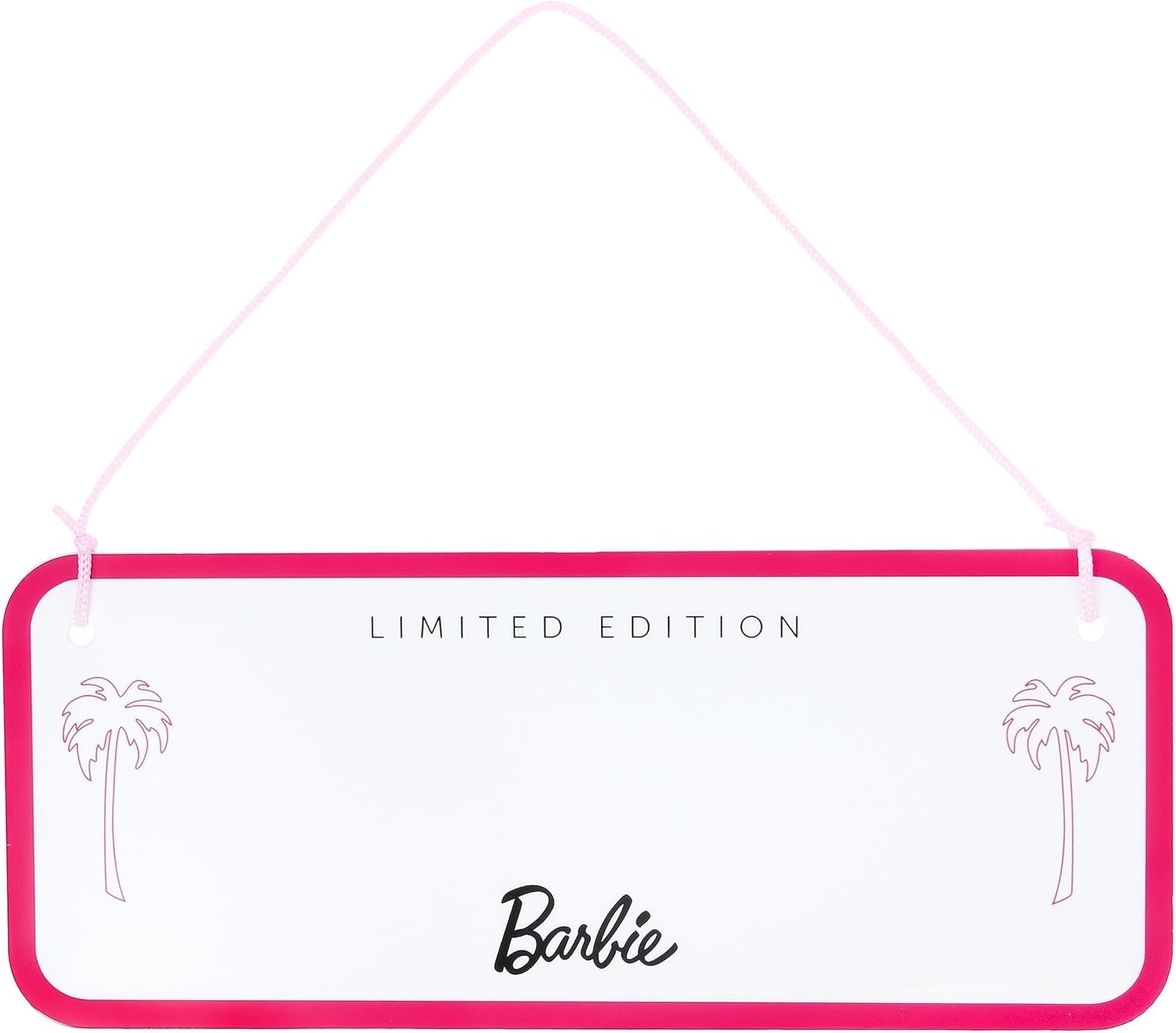 ¡Hola Barbie! Ahora podrás personalizar la entrada a tu habitación (o a tu Barbieland) con este letrero customizable de la icónica muñeca de Mattel. En este pack encontrarás un letrero de 25 x 10 cms que puedes usar por los dos lados, lazo y 8 láminas con etiquetas intercambiables de letras e iconos de la muñeca Barbie y de su mundo. Se trata de un producto de licencia oficial que será el nuevo elemento decorativo de todas las fans de Barbie. Es una creación de la marca Paladone.
