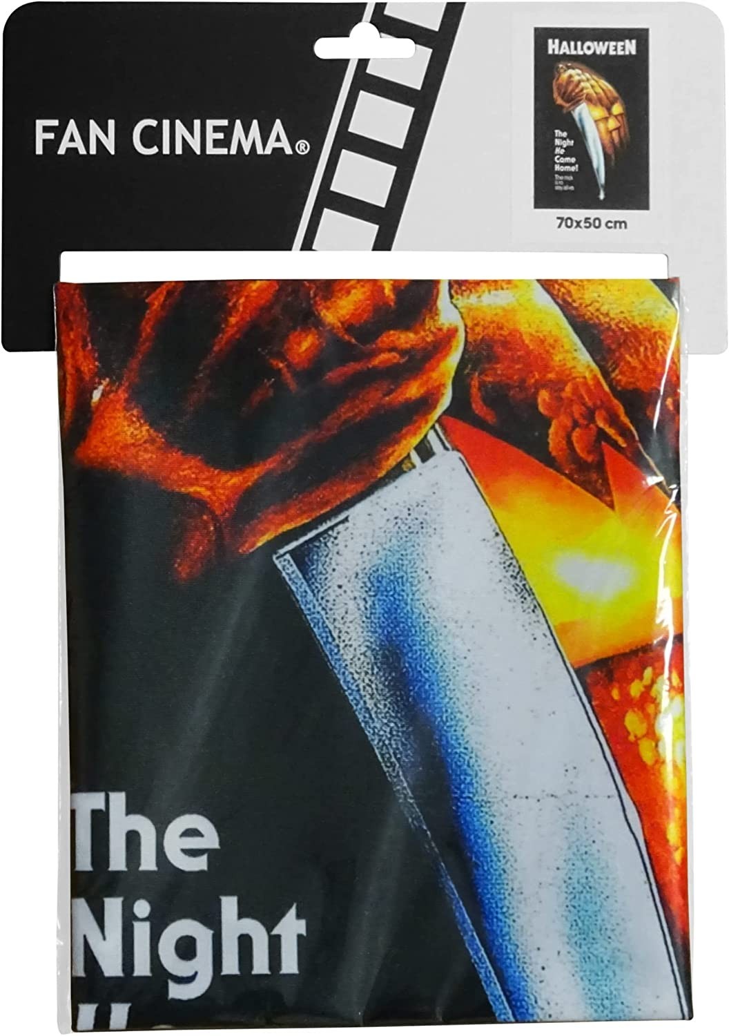 El clásico cartel de "Halloween" con la calabaza y la mano de Michael Myers empuñando el cuchillo llega a tu pared con este cartel de tela que ha creado Fan Cinema. Mide 70 x 50 cms una vez desplegado. Y tú, ¿eres fan de la película más famosa del género 'slasher'?