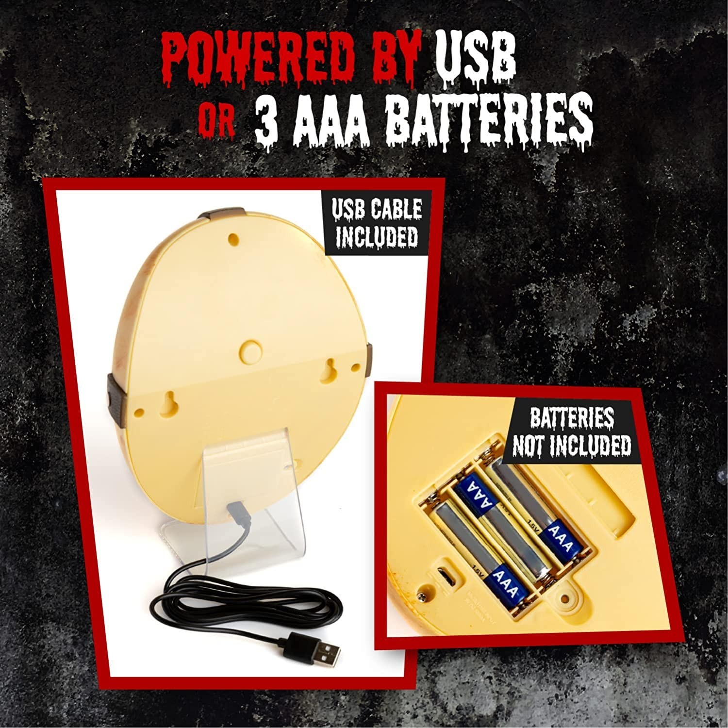Si no te basta con tener la máscara de Jason en casa, sino que también te gustaría que esa máscara iluminara tus noches más tenebrosas… gracias a Paladone tenemos el ítem adecuado. En la tercera entrega de la saga de género 'slasher' el psicópata Jason empezaba a llevar su icónica máscara de hockey cuando cometía sus creativos asesinatos. Esta lámpara de luz ambiente que mide unos 22 cms de altura tiene la forma de la famosa 'cara' de Jason. Funciona con un cable USB que incluye o con 3 pilas AAA que no incluye. Puede ser usada como lámpara de sobremesa o también tienes la opción de montarla a la pared. La espectacular lámpara/máscara es un producto de licencia oficial de Warner Bros que viene en una caja temática de coleccionismo. Hazte con la tuya e ilumina tus maratones de la saga "Viernes 13"