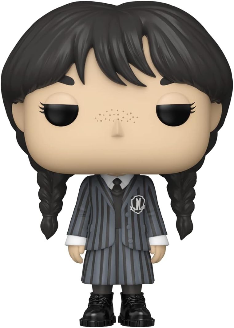 Dos iconos que se unen. Dos nombres legendarios que ahora formarán parte de tu colección en una sola pieza. La famosísima marca Funko Pop! nos trae la figura de 10 cms hecha de PVC de Wednesday (Miércoles) Addams, el personaje interpretado por la actriz Jenna Ortega en la serie de Netflix creada por Tim Burton. Esta Wednesday tiene licencia oficial y representa al personaje con el uniforme de la escuela a la que va en la primera temporada de esta serie que ha batido todos los récords de audiencia. Viene en la clásica caja de Funko Pop! con ventana de exposición para que puedas exponerla sin sacarla de la misma. Llévate a la adolescente con más recursos de la televisión a casa.