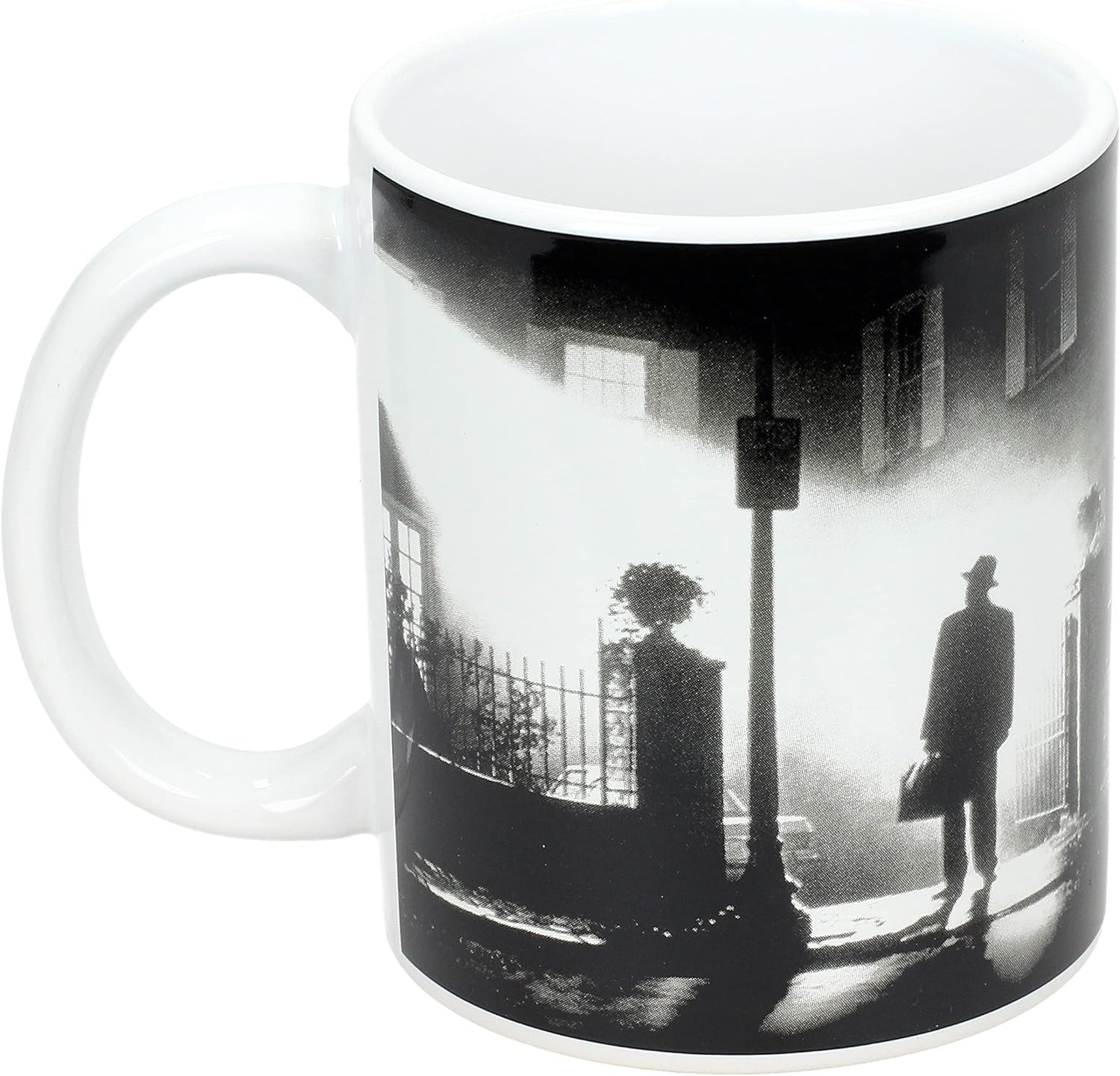 Siente la presencia de la poderosísima presencia de “El Exorcista”, la obra maestra de William Friedkin, cada vez que bebas un sorbo de tu nueva taza que te trae SD Toys. Tiene una ilustración con la mítica imagen del padre Merrin llegando a casa de Chris MacNeill, la misma del póster de la película. El nombre de la cinta también está presente en blanco y negro. Viene en una caja transparente protectora. La taza está hecha de cerámica, tiene una capacidad de unos 320 mls y es apta para lavavajillas y microondas.