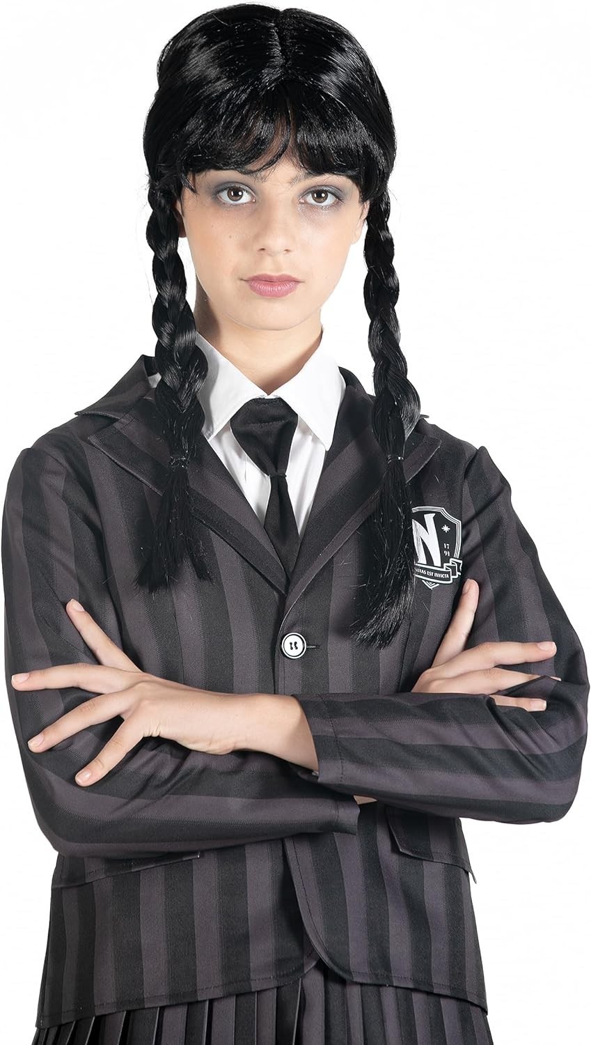 Disfraz Uniforme Colegio Con Peluca Wednesday Addams Miércoles Addams Talla M