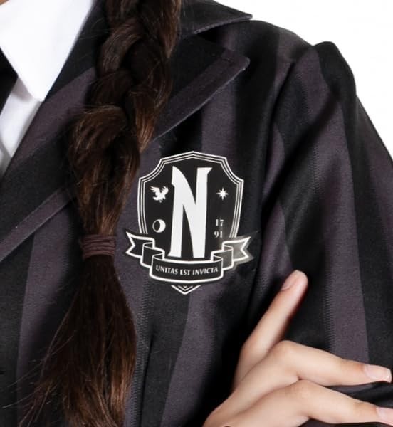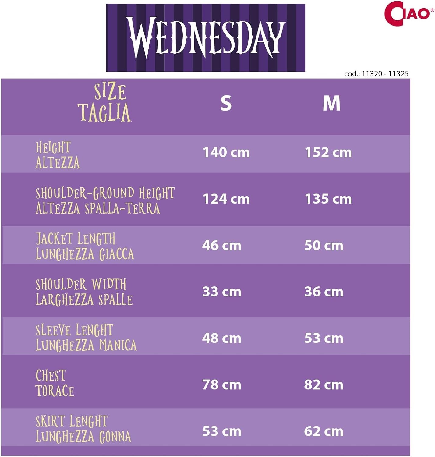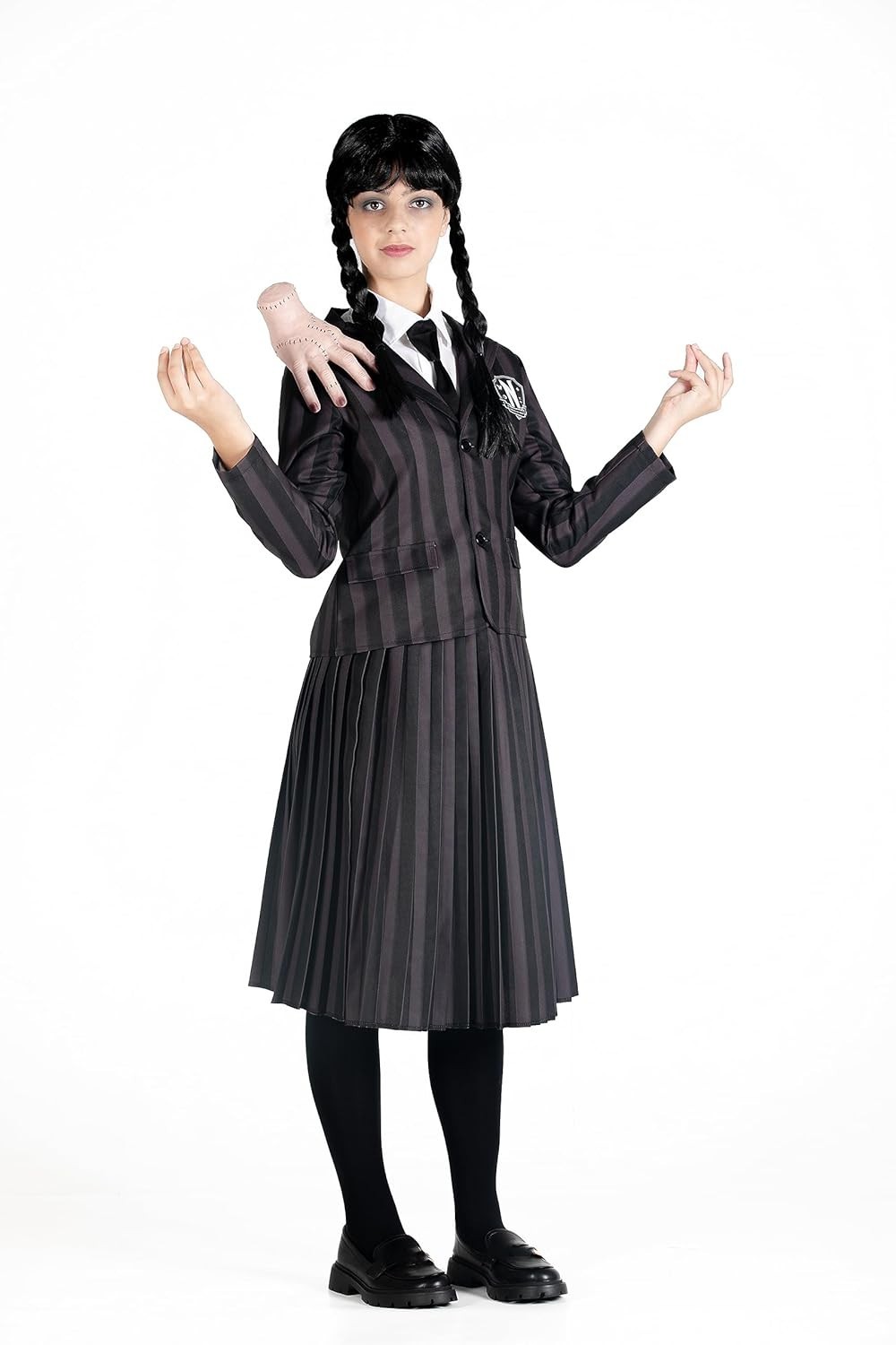 Este disfraz recrea fielmente el icónico uniforme de colegio de Miércoles Addams. Con su chaqueta, falda y peluca negra, captura el aspecto sombrío y distintivo del personaje. Ideal para fanáticos de la familia Addams y perfecto para eventos temáticos de Halloween o cosplay. Un disfraz que te transformará en Miércoles con estilo y autenticidad. Está basado en la famosa serie protagonizada por Jenna Ortega y producida por Tim Burton y Netflix. Es de talla M y ha sido creado por Ciao.