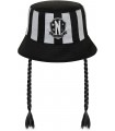 Gorro Pesquero Rayas Grises Con Trenzas Wednesday Miércoles Addams