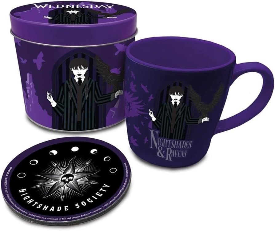Set Lata Regalo Wednesday Nightshades & Ravens Taza, Posavasos Y Lata 315 mls