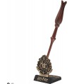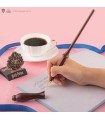 La marca Cineréplicas vuelve a la carga con otra sensacional y práctica réplica del Wizarding World. La varita de la peculiar Luna Lovegood ahora puede ser tuya en la forma de bolígrafo con tapa y base (stand) con el escudo de Hogwarts en acabados dorados. Está tallada con todos los detalles de la varita original, desde el mango (tapa) hasta el cuerpo (bolígrafo) de la varita. Además, este regalazo incluye un marcapáginas lenticular del personaje para que marques tu progreso en las novelas de Harry Potter o en los libros de hechicería (o leyendas) que estés estudiando. Si te gustan los regalos útiles o conoces a alguien que sea un auténtico fan de la saga creada por JK Rowling, este bolígrafo varita será un detalle de los que recordará toda la vida.