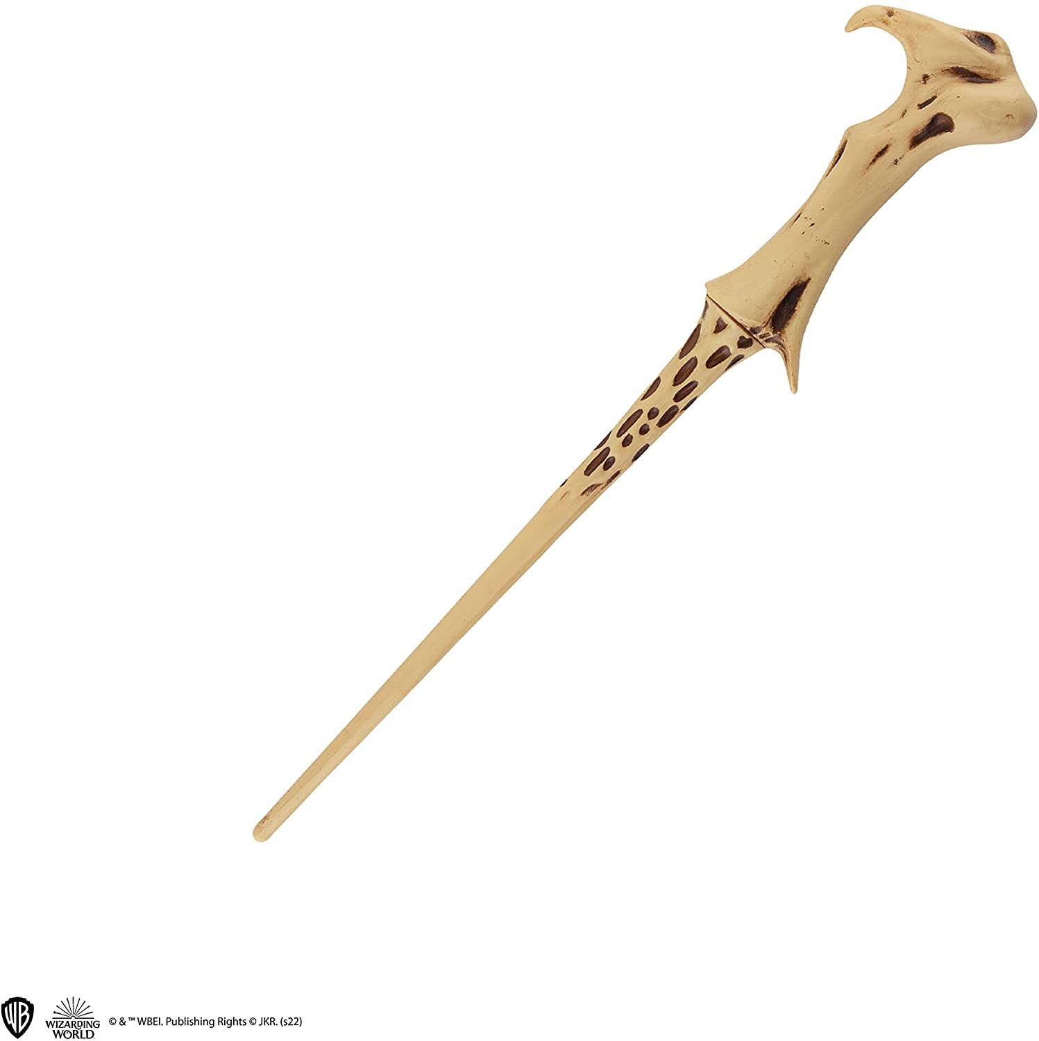La marca Cineréplicas vuelve a la carga con otra sensacional y práctica réplica del Wizarding World. La varita del malvado Lord Voldemort, némesis de Harry, ahora puede ser tuya en la forma de bolígrafo con tapa y base (stand) con el escudo del colegio en acabados dorados. Está tallada con todos los detalles de la varita original, desde el mango (tapa) hasta el cuerpo (bolígrafo) de la varita. Además, este regalazo incluye un marcapáginas lenticular del personaje para que marques tu progreso en las novelas de Harry Potter o en los libros de hechicería (o historia) que estés estudiando. Si te gustan los regalos útiles o conoces a alguien que sea un auténtico fan de la saga creada por JK Rowling, este bolígrafo varita será un detalle de los que recordará toda la vida.