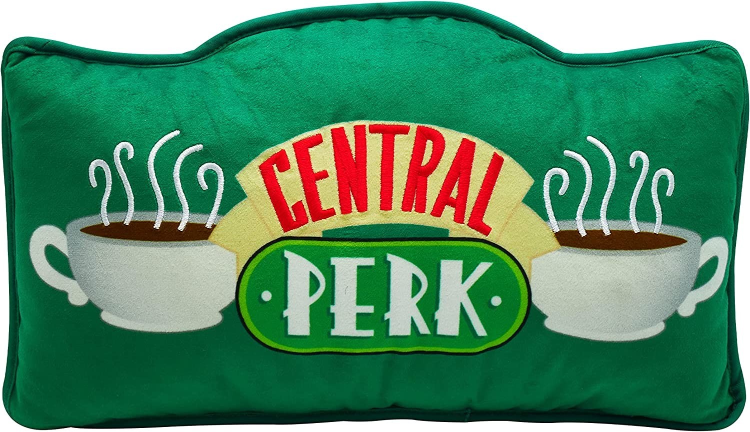 ¡El grupo de amigos más famoso de la televisión ahora por fin estarán en tu propio sofá! No, no te traemos réplicas a tamaño real de los actores, lo que traemos e el exclusivo cojín de licencia oficial del mítico Central Perk, el local en el que se reunían Ross, Rachel, Phoebe, Mónica, Joey y Chandler. Ha sido creado por Abystyle y mide 34 x 20 cms. Por un lado lleva el logo de Central Perk y por el otro los nombres de los personajes como si los hubieran escrito los propios actores. Está hecho de poliéster 100% y le dará a tu rincón preferido el toque neoyorquino que le falta.
