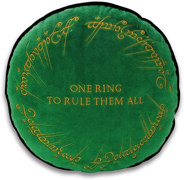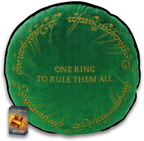 Un cojín para gobernarlos a todos y atarlos en las tinieblas… ¿no? No, eso no es lo que decía el texto en letras incandescentes en la superficie del Anillo Único. Pero no pasa nada, con este exclusivo cojín de Abystyle de 32 cms de ancho tendrás un artículo casi igual de poderoso que el preciado aro. De licencia oficial de El Señor de los Anillos, New Line Cinema y Warner Bros., ahora podrás echarte tus mejores siestas al estilo Aragorn descansando de un largo viaje. Está hecho de suave poliéster y lleva la frase ‘One Ring to rule them all’ en uno de sus lados junto a las letras originales del anillo. Hazte con el y prepárate para el viaje al Monte del Destino.