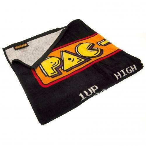 Lo retro y lo suave se dan la mano en esta divertida y nostálgica toalla de algodón 100% inspirada en el juegazo Pac-Man. El rey de los recreativos de los años ochenta, el comecocos, como lo conocíamos en español, volverá a traer recuerdos en la playa y en tu piscina cuando lo vean perseguir a los fantasmas de colores en tu nueva toalla de la marca Groovy. Tiene en su amplia superficie de 150 x 75 cms el clásico laberinto negro y azul por el que Pac-Man perseguía a los coloridos ectoplasmas. Además, en la parte inferior del laberinto está la mítica expresión “Waka-Waka”, el sonidito que hacía Pac-Man al avanzar por los oscuros pasillos.