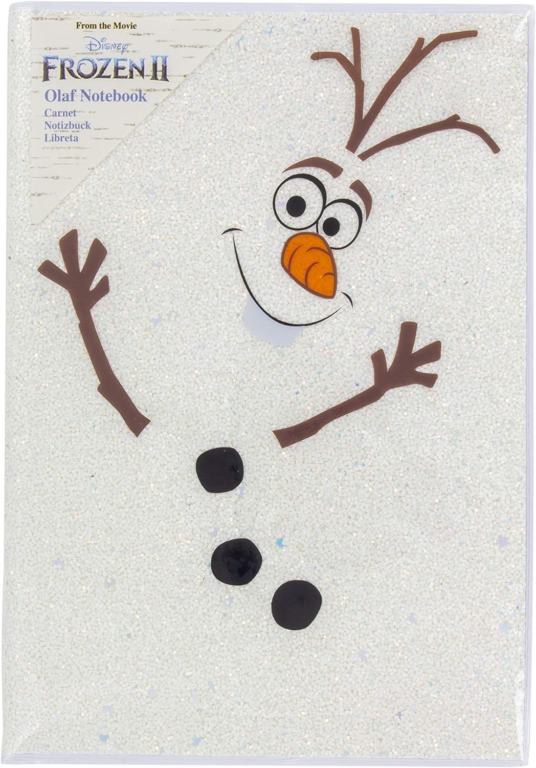 El simpático y leal Olaf, el muñeco de nieve que acompañaba en sus aventuras a Anna y Elsa, en las películas de Frozen, de Disney Studios, será ahora tu asistente ideal. Este cuaderno que parece que tiene copos de nieve en el interior de su portada y de su parte trasera, está inspirado en el divertido personaje. Y no solo tiene una ilustración de Olaf en la portada en la que parece que cobra vida con una textura 3D, sino que también, en la esquina de cada página de las 200 que tiene, hay un dibujito de Olaf. Es una libreta de licencia oficial que ha creado la marca Paladone. No habrá idea que no puedas anotar. Las páginas tienen líneas horizontales a modo de guía para que no te tuerzas ni un poquito.