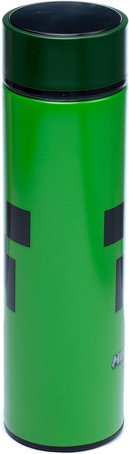 Botella Térmica Creeper Minecraft Con Termómetro Metálica 450 mls