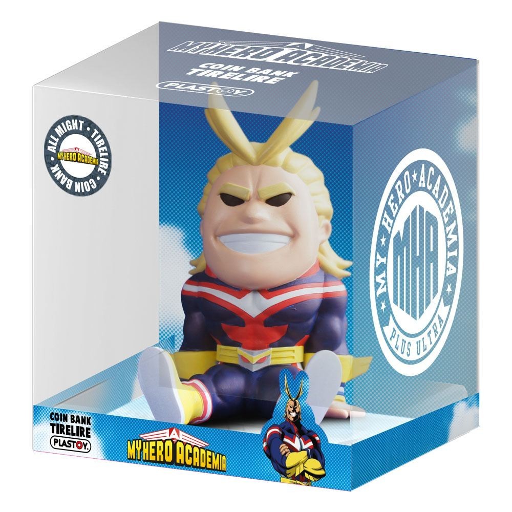 Toshinori Yagi es un héroe mejor conocido como All Might, y es uno de los personajes principales del anime “My Hero Academia”. Uusario del Don One For All y antiguo héroe número uno. Inspirado por los estereotipos más exagerados y tópicos de los héroes americanos, All Might es uno de los iconos más reconocibles de la serie de anime. Ahora todos los fans de MHA podréis guardar todos vuestros ahorros a buen recaudo con la hucha de All Might que ha creado la marca Plastoy. Está hecha de PVC pintado para recrear fielmente el aspecto del personaje, viene en una caja transparente y mide unos 17 cms de altura. Hazte con el superhéroe del anime por definición y mantén a salvo aquello que tanto te ha costado ganar. ¡Colecciona todas las huchas de MHA!