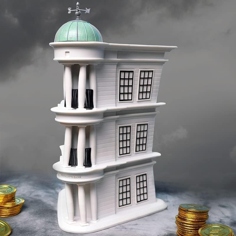 Los duendes de Gringotts guardarán tu dinero con celo, igual que si se tratara del oro de Harry Potter. Esta hucha creada por Abystyle tiene unas medidas de 16,8 x 26 x 14,1 cms. Echa tu moneda y verás como se desliza por los raíles hasta caer en la cámara acorazada. Tiene licencia oficial del Wizarding World y viene en una caja decorada con motivos de la famosa saga del niño mago. Está hecha de PVC y es uno de los artículos más originales que podrás encontrar basados en el célebre Callejón Diagón, lugar de reunión y compras de todos los habitantes del mundo mágico.