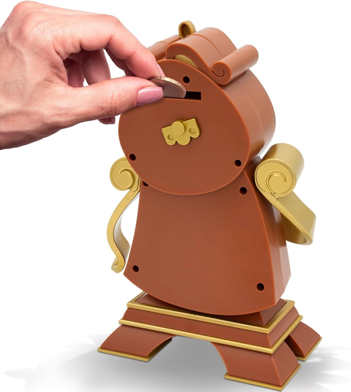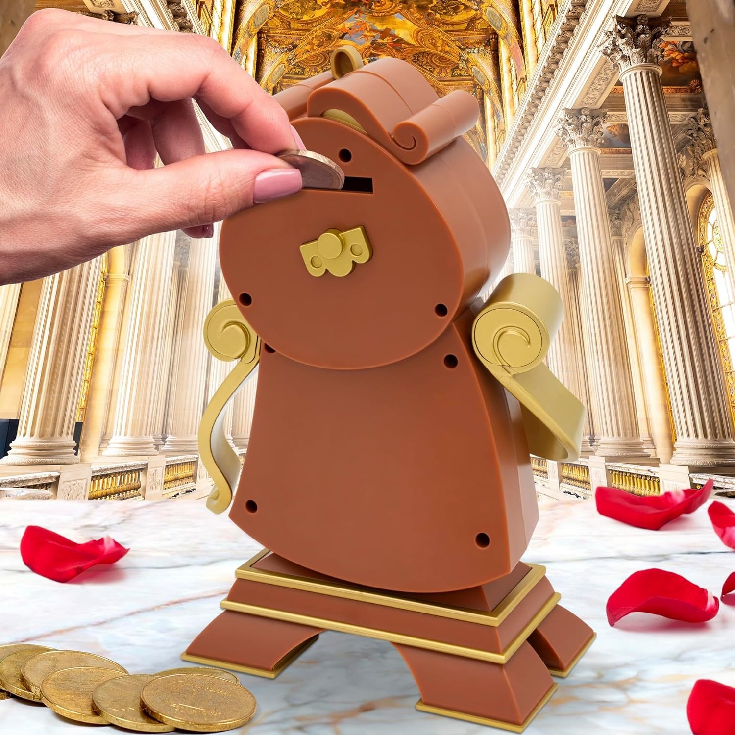 ¡Prepárate para convertir tus ahorros en pura magia! Esta hucha de 25 cms es nada menos que el encantador Cogsworth, el icónico reloj de la película de Disney La Bella y la Bestia. Pero no es cualquier hucha; este Cogsworth tiene estilo, personalidad y un as bajo la manga. Cada vez que depositas una moneda, ¡el péndulo comienza a moverse y a oscilar con el ritmo de la magia encantada del castillo! Es como si Cogsworth estuviera diciendo: "¡Gracias por tu contribución, querido amigo!" con su voz refinada y sus modales exquisitos. Fabricado con detalles tan auténticos que casi puedes imaginarlo dándote consejos de etiqueta, esta hucha no solo guarda tus monedas, sino que también es un auténtico espectáculo. Desde sus manecillas perfectamente decoradas hasta su bigote esculpido con precisión, cada rincón está lleno de encanto y nostalgia. Ideal para niños, adultos y fanáticos de Disney, ahorrar nunca ha sido tan divertido. Así que, si estás buscando una forma emocionante de guardar tus monedas y añadir un toque de fantasía a tu decoración, ¡Cogsworth está listo para marcar la hora de tus ahorros y hacerlo con estilo!