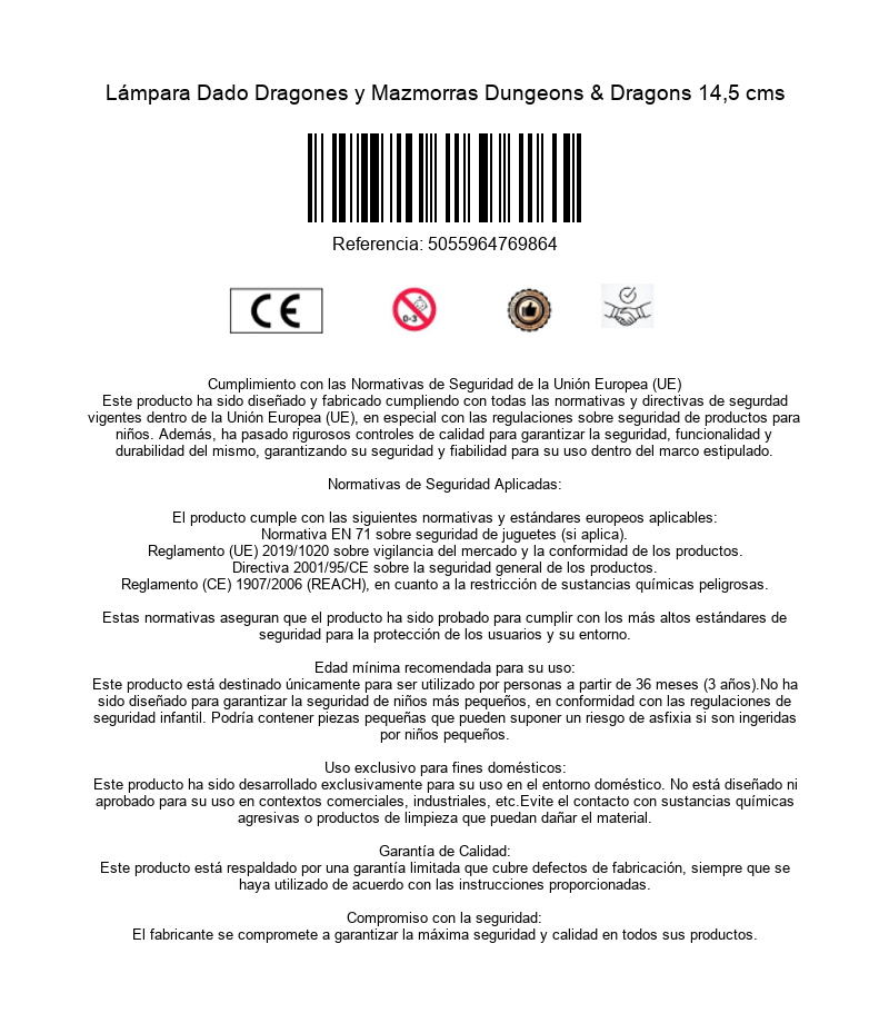 Uno de los símbolos del juego de rol Dungeons & Dragons es el dodecaedro, que es un poliedro de doce caras. El dodecaedro se usa como dado para lanzar y jugar en este juego distribuido por Wizards of the Coast. Algo único de D&D es que los usuarios pueden crear contenido para el juego, de esta forma han creado una interesante mezcla de contenido creado de forma ‘oficial’ y ‘alternativa’. Paladone ha creado un magnífico artículo para regalar a los fans de este mítico juego: ¡una lámpara de dado dodecaedro! Con el aspecto de uno de estos dados de doce lados, la lámpara mide unos 14,5 cms y tiene función de luz cambiante para que varies entre morado, azul, verde, amarillo y rojo. Funciona con dos pilas AAA que no están incluidas, haciéndola mucho más transportable para que puedas ponerla en cualquier lugar de la casa. Ilumina tus incursiones al mundo de “Dungeons & Dragons” con esta lámpara. Viene en una caja temática roja y negra.