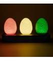 Los auténticos huevos de dragón de la reina Daenerys llegan a tu casa para iluminar tus noches de lectura de la saga de fantasía más famosa de los últimos años. Basados en la serie de HBO “La casa del dragón”, estos tres huevos de dragón de colores rojo, verde y amarillo son en realidad una lámpara que funciona con tres pilas AAA que no están incluidas. Lo que si incluye es un cable micro USB 5V DC 500 mA con el que también funciona. Tienen tres modos, standard, phasing y music reactive. Mide unos 30 cms de largo. Decora tu salón del trono particular con esta espectacular lámpara de la saga más famosa de HBO.
