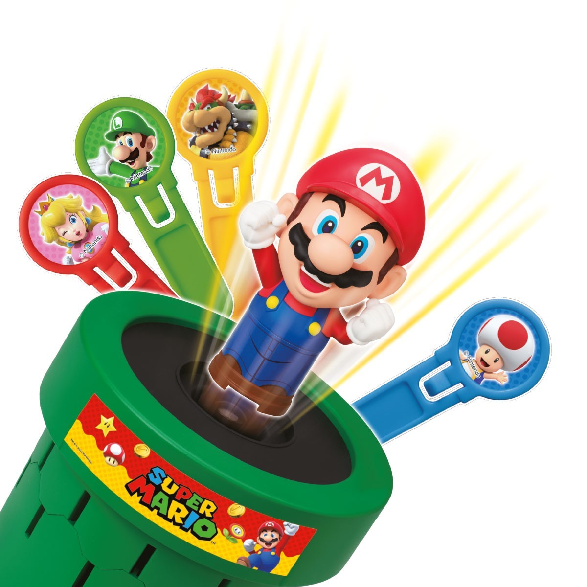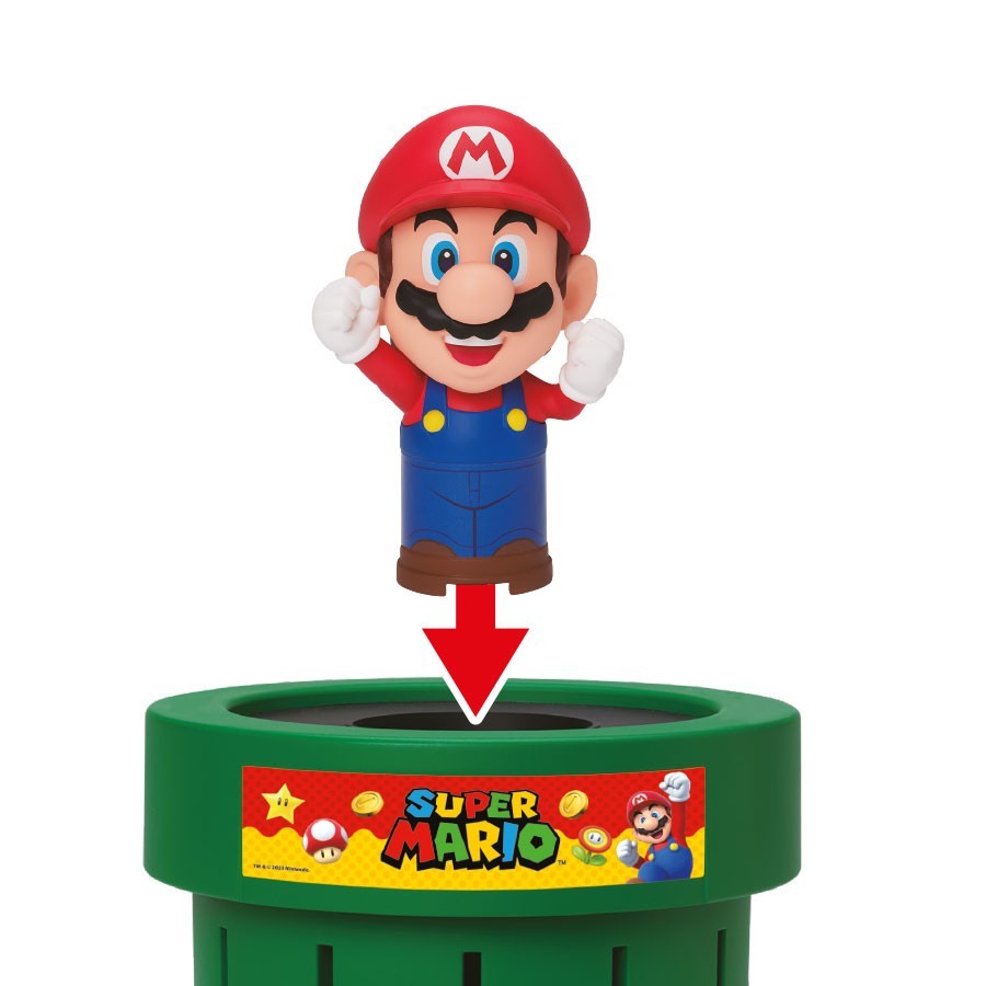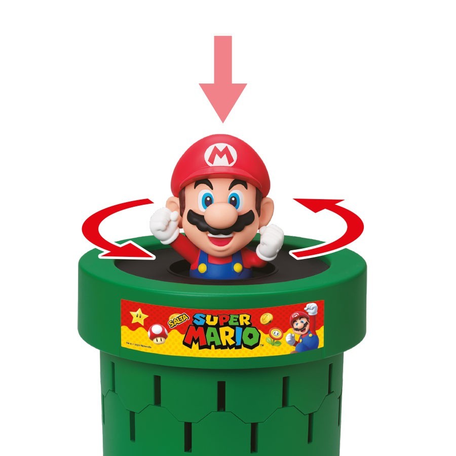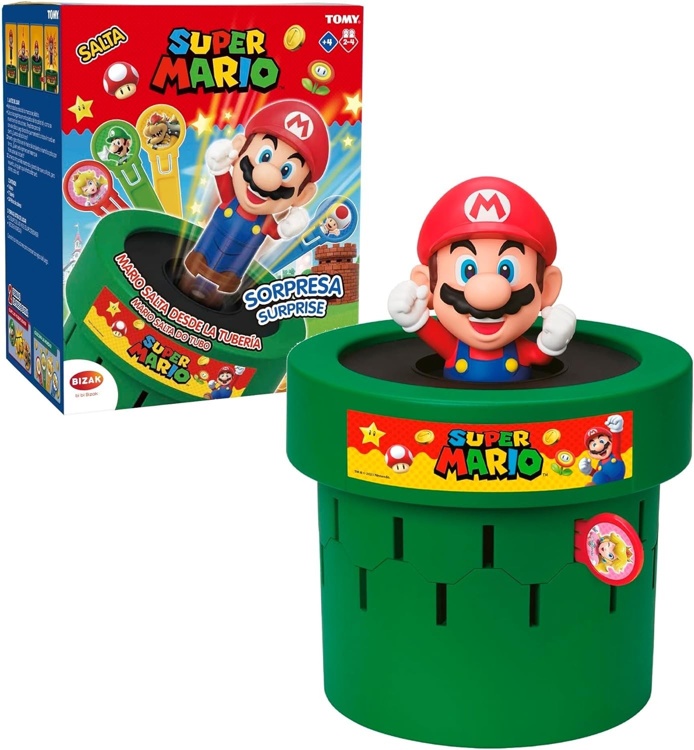 Si te gustan los juegos de mesa divertidos y emocionantes, tenemos lo que estás buscando. Salta Super Mario es el divertido juego que la marca Tomy ha creado en colaboración con Bizak y Nintendo. Dentro de la caja de Salta Super Mario, viene una de las icónicas tuberías verdes de Super Mario Bros, y una figura del mismísimo Mario. Introduce al fontanero en la tubería, gíralo, y a continuación juega con uno de los dos modos distintos. Podrás jugar a coleccionar monedas o hacer un equipo Luigi Vs equipo Bowser. Inserta los palitos en la tubería, pero ojo, ¡porque no sabrás cuando Mario va a saltar! Este juego incluye 1 Mario, 1 tubería y 24 palos de colores. Es para 2 o 4 jugadores, y es de licencia oficial Nintendo. Juega y sorpréndete con Salta Super Mario.