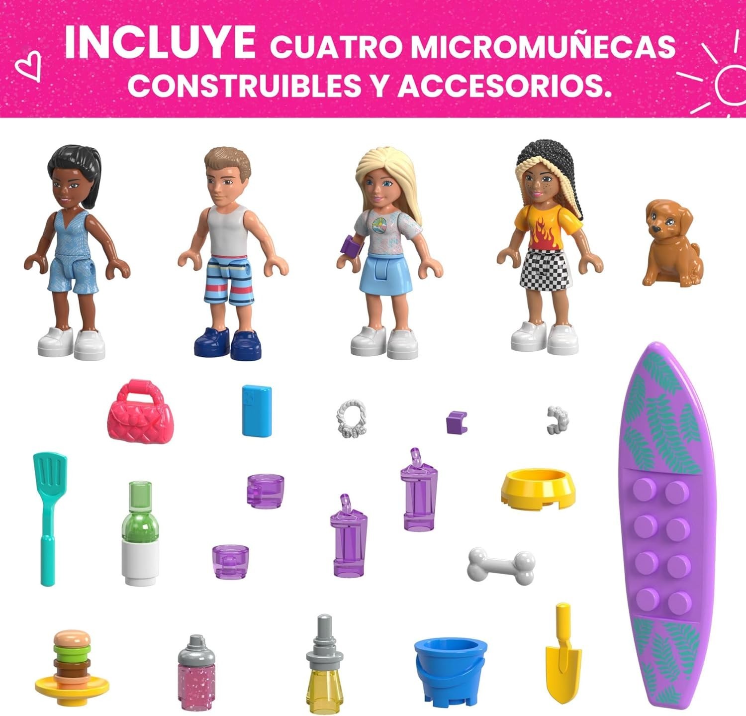 Barbie ha visitado tantos lugares como vestidos tiene. Y ahora no solo podrás visitar lugares con ella, ¡sino que también podrás construirlos! Gracias a Mega y Mattel, ahora puedes construir tu propia aventura camper de ensueño de Barbie. Con más de 580 piezas y 15 accesorios distintos como personajes y mascotas, este kit de construcción es ideal para tener tu propia autocaravana con piscina, tobogán y zona de descanso y comida. Diviértete con Barbie y sus amigos con este kit de licencia oficial de la legendaria muñeca.