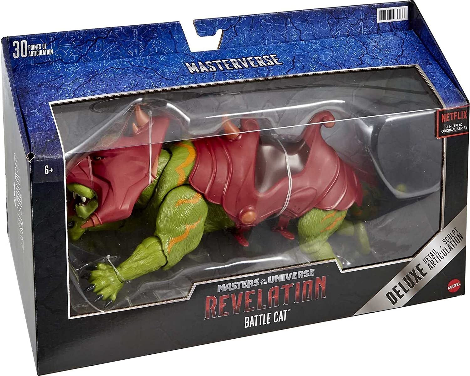 El fiel y salvaje felino, montura de He-Man, también salía en la serie de Netflix "Masters of the Universe Revelation". Esta impresionante y detalladísima figura de 35 cms de largo y 27 de alto incluye dos accesorios: la silla de montar y el casco de batalla del Battle Cat. Tiene hasta 30 puntos de articulación y es una figura Deluxe de la línea Masterverse Mattel. Disfrútala suelta o en su elegante caja azul y negra de exposición. Hazte con todas las figuras de la colección Masterverse y enfrenta con tus héroes y villanos del planeta Eternia que lucen unos diseños actualizados super atractivos pero que respetan la esencia original que les hizo célebres en primer lugar.