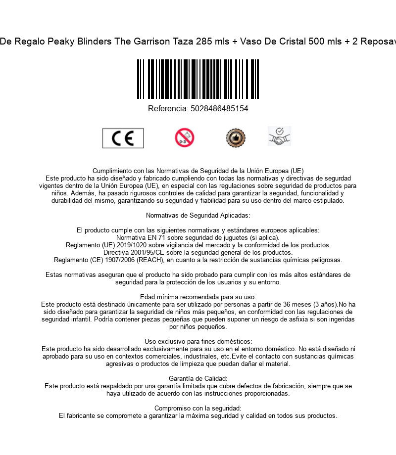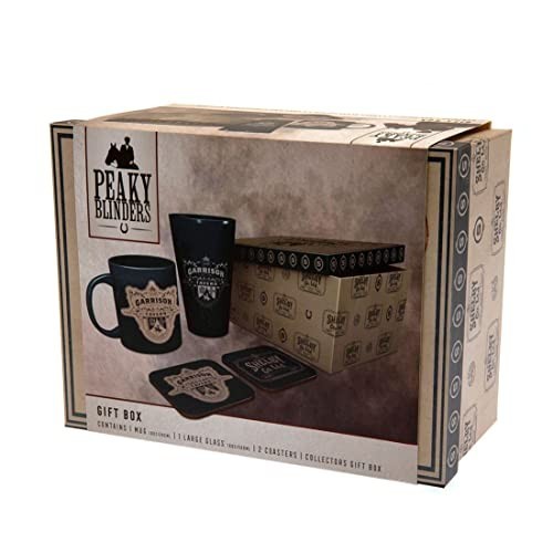 El Garrison es el pub propiedad de los Peaky Blinders desde el cuál planean todos sus golpes y ascenso al poder en la sombra. Si eres un fan de este serión protagonizado por Cillian Murphy, gracias a GB Eye te traemos este set que incluye dos reposavasos, un vaso de cristal de 500 mls y una taza de cerámica de 285 mls. Todos los elementos están decorados con motivos del Garrison, haciéndolos parecer recién sacados de la época. No son aptos para microondas ni lavavajillas. ¡Por orden de los Peaky Blinders, esta caja debe ser tuya!