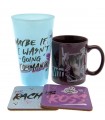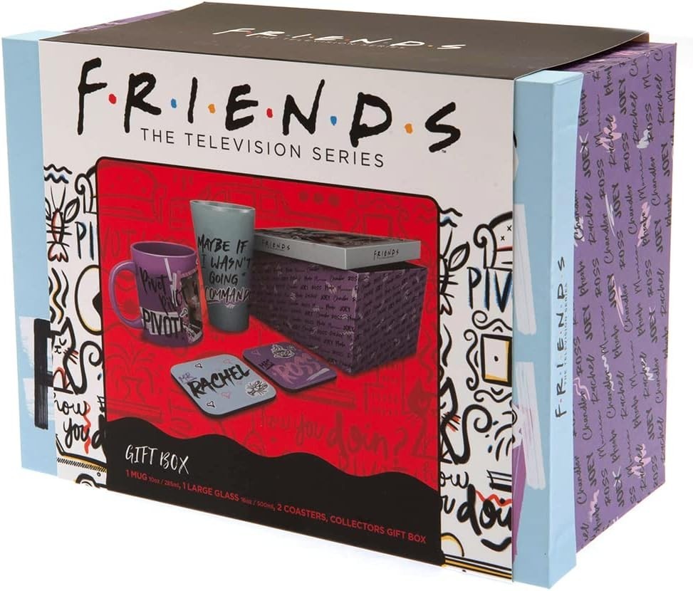 El grupo de amigos más famoso de Nueva York y todo su mundo inspira este fantástico set de regalo para que des la bienvenida a tu casa a tu propio grupo de ‘Friends’. Creado por GB Eye y con licencia oficial de Friends, este set contiene una taza de cerámica de 285 mls de capacidad, un vaso de cristal de 500 mls y dos posavasos. Vienen en una caja temática con tapa de la serie sitcom más famosa de la historia, y todas las piezas están decoradas frases y nombres de los personajes. Un original set para todos los fans de esta serie que cambió la historia de la televisión para siempre. Ojo, no son piezas aptas para meter al microondas ni al lavavajillas.
