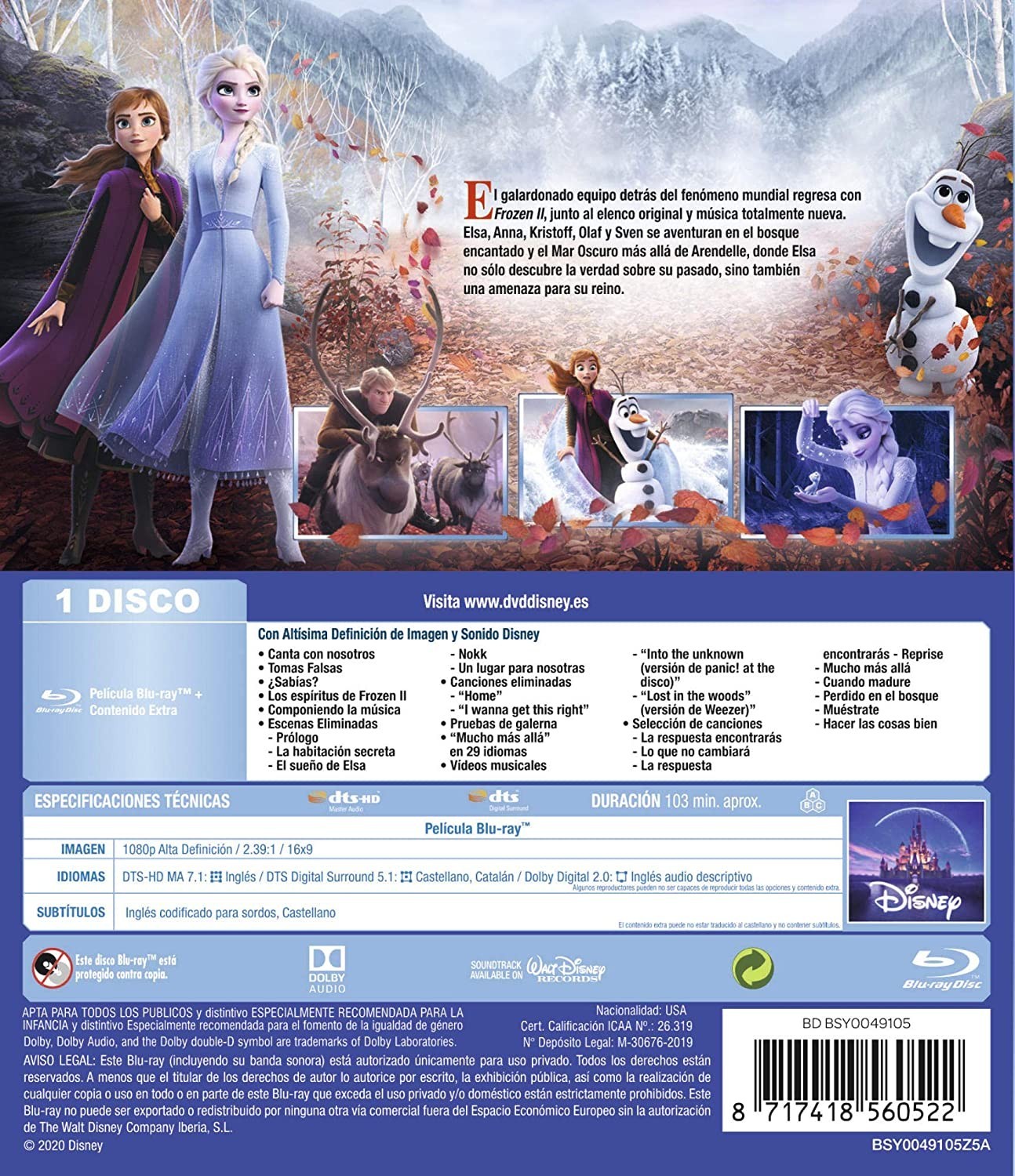 ¿Por qué nació Elsa con poderes mágicos? La respuesta le está llamando y amenaza su reino. Junto con Anna, Kristoff, Olaf y Sven emprenderá un viaje peligroso e inolvidable. En 'Frozen', Elsa temía que sus poderes fueran demasiado para el mundo; ahora deseará que sean suficientes. Secuela de "Frozen. El reino del hielo" (2013), el film de animación más taquillero de la historia del cine, ganador del Oscar a la mejor película animada. Reúne al mismo equipo artístico y técnico de la original.