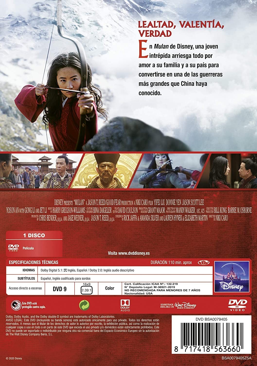 Llena de acción, divertidos personajes y una banda sonora sensacional, Mulan narra la historia de una joven que con la fuerza del honor y el valor de un soldado, luchará por ser fiel a su corazón. La bella e inteligente Mulan, a la que no le gusta estar sometida a las tradiciones de la sociedad en la que vive, tiene la oportunidad de demostrar su valor cuando se disfraza de Ping y reemplaza a su padre en el Ejército Imperial, uniéndose a otros reclutas para la instrucción militar. Con la ayuda de su gracioso dragón guardián, Mushu, y el grillo de la suerte, Cri-Kee, luchará por ganarse el respeto del resto de guerreros y del apuesto Capitán Shang. Su valentía le llevará a liderar una batalla decisiva en el Palacio Imperial, donde el honor de su familia, el destino del Emperador y el de toda China está en sus manos.