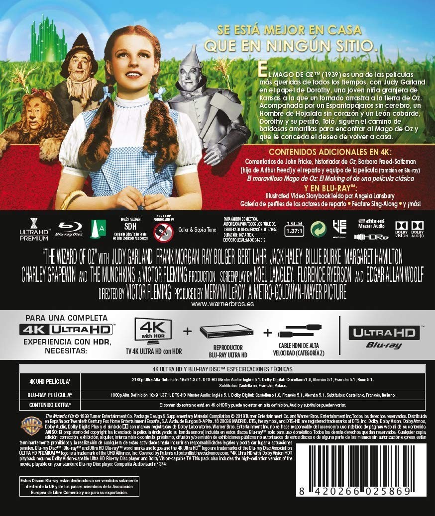 Dorothy, que sueña con viajar "más allá del arco iris", ve su deseo hecho realidad cuando un tornado se la lleva con su perrito al mundo de Oz. Pero la aventura sólo acaba de comenzar: tras ofender a la Malvada Bruja del Oeste (Margaret Hamilton), aconsejada por la Bruja Buena del Norte (Billie Burke), la niña se dirige por el Camino Amarillo hacia la Ciudad Esmeralda, donde vive el todopoderoso Mago de Oz, que puede ayudarla a regresar a Kansas. Durante el viaje, se hace amiga del Espantapájaros (Ray Bolger), el Hombre de Hojalata (Jack Haley) y el León Cobarde (Bert Lahr). El Espantapájaros desea un cerebro, el Hombre de Hojalata quiere un corazón, y el León, el coraje que le falta; convencidos de que el Mago también les puede ayudar a ellos, deciden unirse a Dorothy en su odisea hasta la Ciudad Esmeralda.