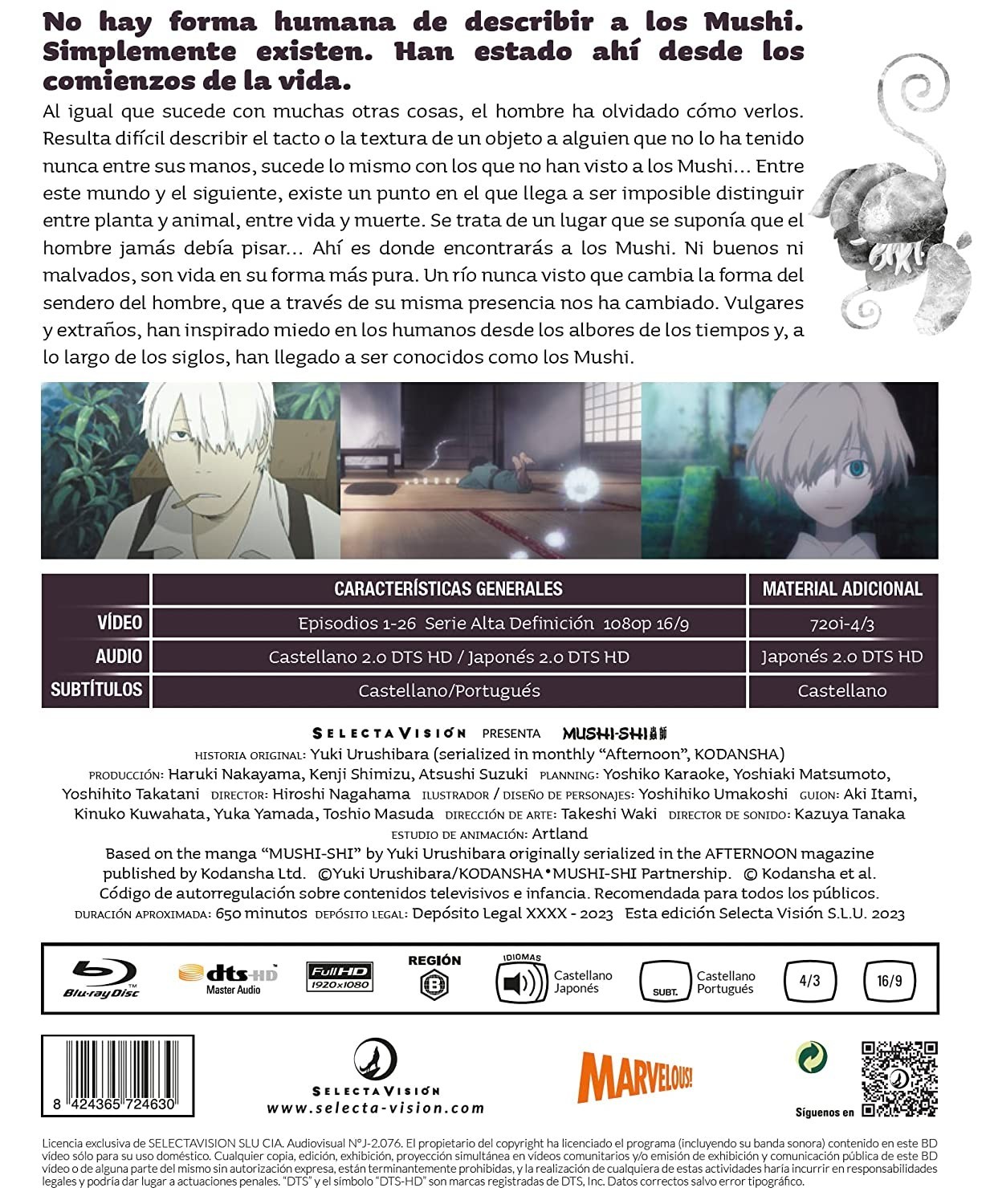No hay forma humana de describir a los mushi. Simplemente existen. Han estado ahí desde los comienzos de la vida. Al igual que sucede con muchas otras cosas, el hombre ha olvidado cómo verlos. Resulta difícil describir el tacto o la textura de un objeto a alguien que no lo ha tenido nunca entre sus manos, sucede lo mismo con los que no han visto a los mushi... Entre este mundo y el siguiente, existe un punto en el que llega a ser imposible distinguir entre planta y animal, entre vida y muerte. Se trata de un lugar que se suponía que el hombre amás debía pisar... Ahí es donde encontrarás a los mushi. Ni buenos ni malvados, son vida en su forma más pura. Un río nunca visto que cambia la forma del sendero del hombre, que a través de su misma presencia nos ha cambiado. Vulgares y extraños, han inspirado miedo en los humanos desde los albores de los tiempos y, a lo largo de los siglos, han llegado a ser conocidos como los mushi.
