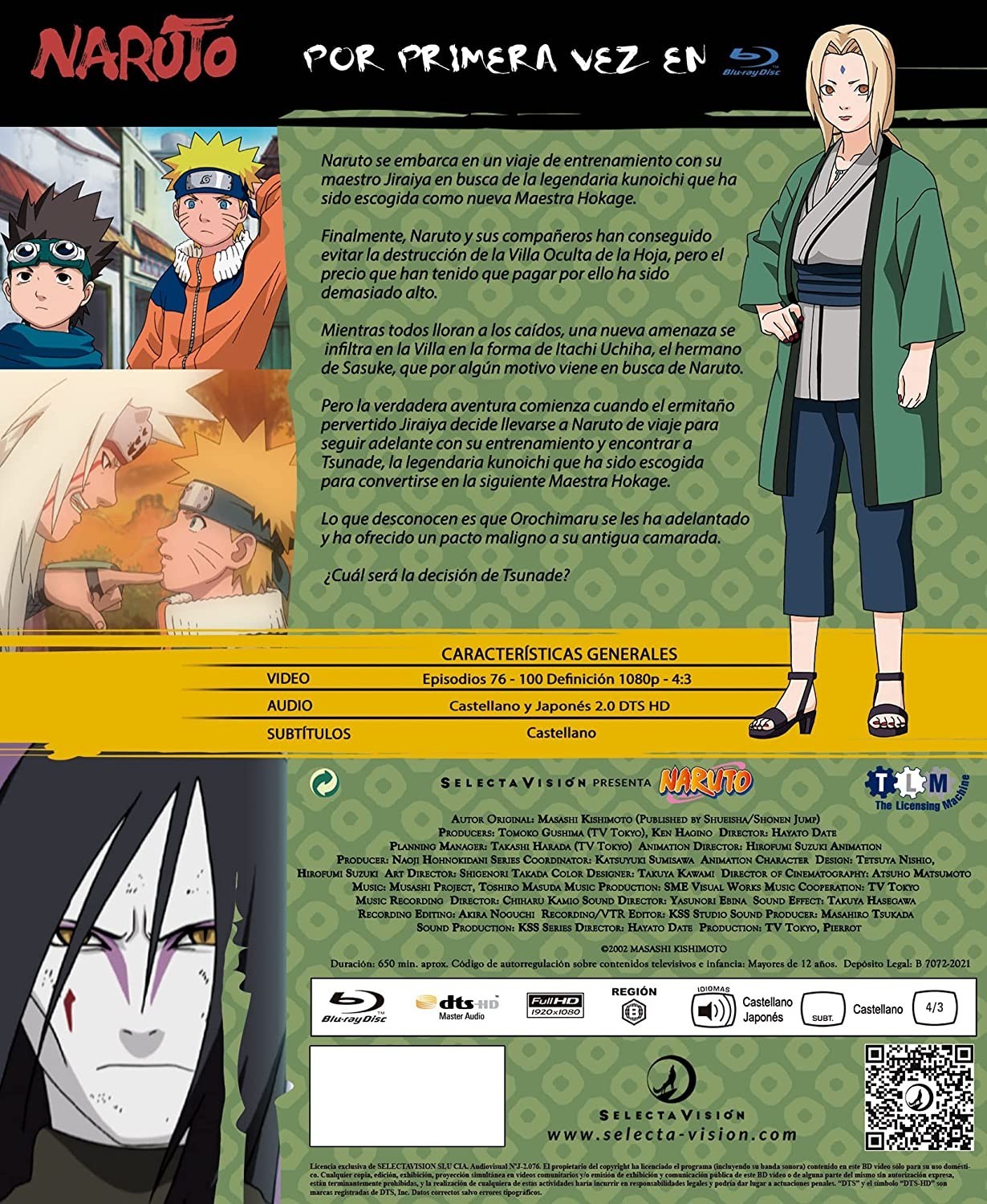 Naruto se embarca en un viaje de entrenamiento con su maestro Jiraiya en busca de la legendaria kunoichi que ha sido escogida como nueva maestra hokage. Finalmente, Naruto y sus compañeros han conseguido evitar la destrucción de la villa oculta de la hoja, pero el precio que han tenido que pagar por ello ha sido demasiado alto. Mientras todos lloran a los caídos, una nueva amenaza se infiltra en la villa en la forma de Itachi Uchiha, el hermano de sasuke, que por algún motivo viene en busca de naruto. Pero la verdadera aventura comienza cuando el ermitaño pervertido jiraiya decide llevarse a naruto de viaje para seguir adelante con su entrenamiento y encontrar a tsunade, la legandaria kunoichi que ha sido escogida para convertise en la siguiente maestra hokage. Lo que desconocen es que orochimaru se les ha adelantado y ha ofrecido un pacto maligno a su antigua camarada. ¿Cuál será la decisión de tsunade?