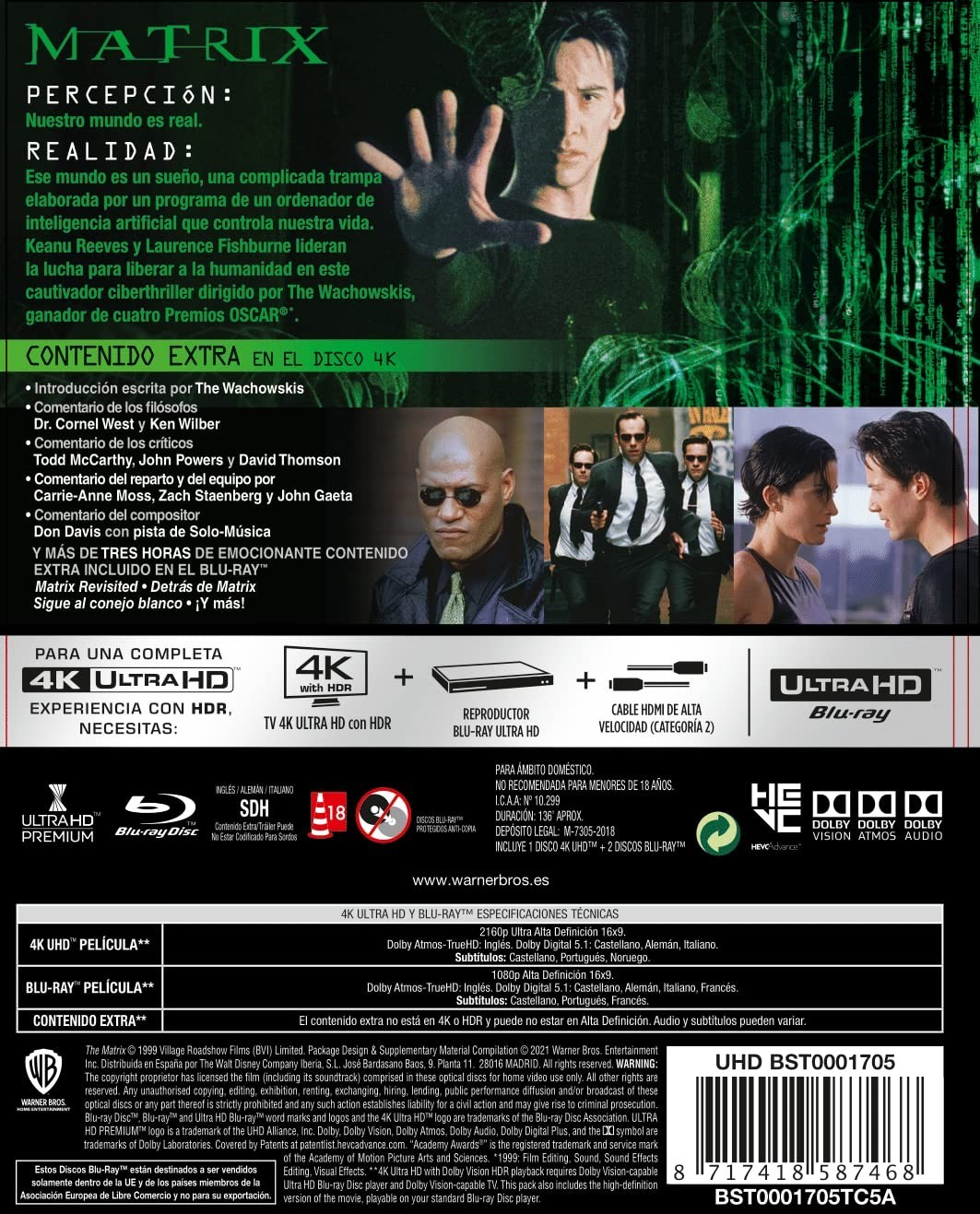 Descripción del producto • Introducción Escrita de las Hermanas Wachowski • 4 commentaires du film / 4 Commentaries - De los Filósofos Dr. Cornel West y Ken Wilber - De los Críticos Todd McCarthy, John Powers y...