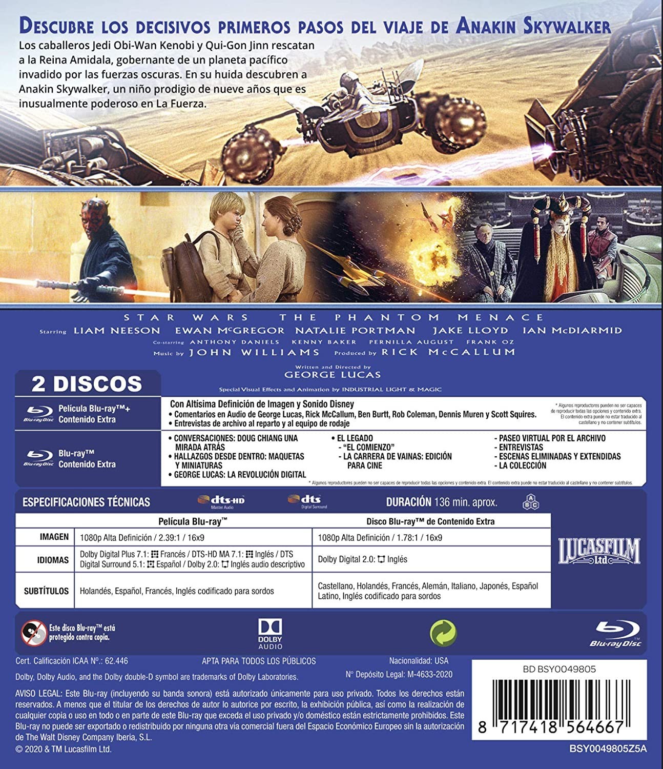Star Wars Ep I: La Amenaza Fantasma (Edición remasterizada) 2 discos (película + extras) [Blu-ray]