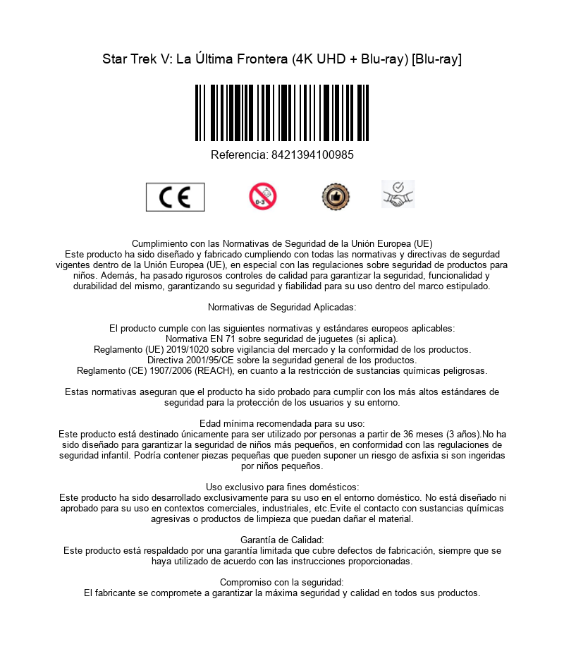 ?Vamos A Necesitar Todo El Poder Que Pueda Usted Reunir, Señor? (Kirk) La Quinta Película De La Saga Cinematográfica Original Se Ve Mejor Que Nunca En Blu-Ray?, Audazmente Remasterizada A Partir De Un Escaneo 4K De Los Elementos Originales De La Película. La Tripulación De La Nave Estelar De La Federación Enterprise Es Convocada A Nimbus Iii Para Negociar Un Secuestro De Un Vulcano Renegado, Que Resulta Ser Un Pariente De Spock. Pronto, Se Ponen En Camino Hacia El Centro De La Galaxia En Una Obsesiva Búsqueda De Un Misterioso Planeta Que Muy Posiblemente Podría Ser La Fuente De Toda La Vida. Extras (Las Características Especiales Se Presentan En Alta Definición Salvo Que Se Indique Lo Contrario, No Están Calificadas Y Pueden No Estar Subtituladas): ?Uhd: Comentarios De William Shatner, Liz Shatner, Michael &Amp, Denise Okuda, Judith &Amp, Garfield Reeves-Stevens Y Daren Dochterman ?Bd: Comentarios De William Shatner, Liz Shatner, Michael &Amp, Denise Okuda, Judith &Amp, Garfield Reeves-Stevens Y Daren Dochterman ? Biblioteca Del Ordenador ? Producción ? El Universo De Star Trek ? Tomas Falsas ? Escenas Eliminadas ? Storyboards ? Galería De Producción ? Trailers De Cine Y Anuncios De Tv Disco 1 4K Ultra Hdr Dolby - 2,40:1 Letterbox ? 106 Min. Color ? Audio Castellano 5.1 Dolby Digital Surround, Inglés 7.1 Surround Dolby Truehd, Alemán En 5.1 Surround Dolby Truehd, Francés Y Japonés 5.1 Dolby Digital Surround, Audiocomentarios En Inglés 2.0 Estéreo ? Subtítulos Castellano, Inglés, Inglés Para Sordos?, Alemán, Danés, Finés, Francés, Japonés, Neerlandés, Y Sueco. Disco 2 Bd ? 1080P Hd ? 106 Min. ? 2.40:1 Letterbox ? Color ? Audio Castellano 5.1 Dolby Digital Surround, Inglés 7.1 Surround Dolby Truehd, Alemán, Francés Y Japonés En 5.1 Dolby Digital Surround, Audiocomentarios En Inglés 2.0 Estéreo ? Subtítulos Castellano, Inglés, Inglés Para Sordos?, Alemán, Danés, Finés, Francés, Japonés, Neerlandés, Noruego Y Sueco.