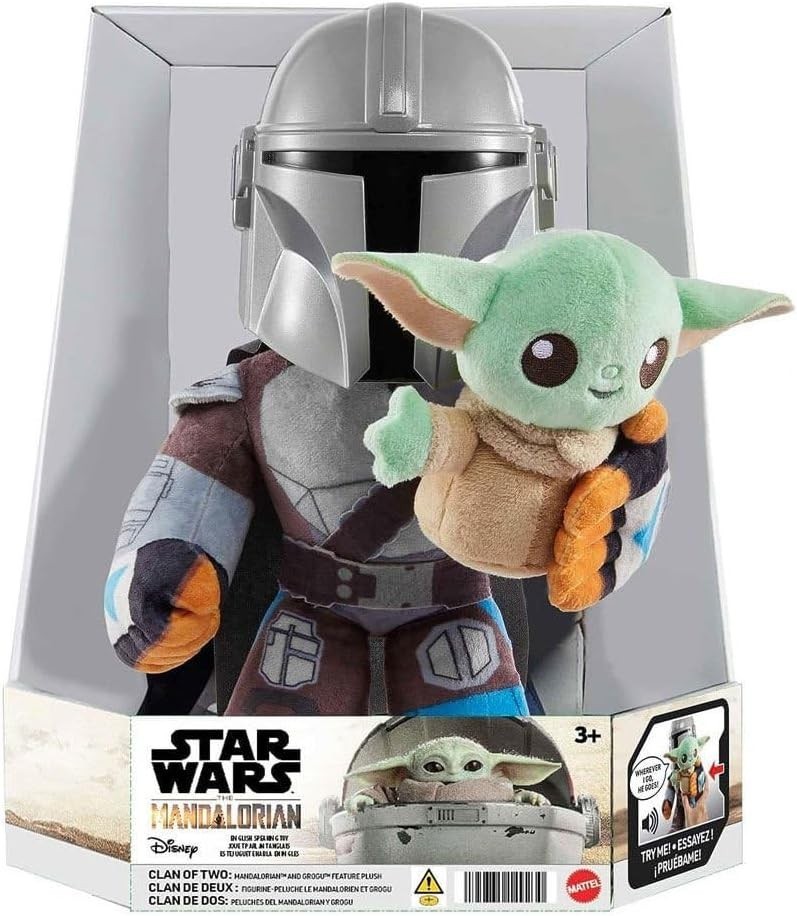 Din Djarin, el mandaloriano protagonista de la serie creada por Jon Favreau y Dave Filoni es el protector (y algunos dirían padre adoptivo) de Grogu, el icónico aprendiz de Jedi de la misma raza que Yoda. Ahora podrás tener a este clan de dos, con este peluche de 27 cms que nos trae Mattel. Es de licencia oficial Star Wars y está hecho de fibras de poliéster. Tiene sonido gracias a sus pilas no reutilizables que vienen incluidas. Tiene frases y sonidos en inglés. El casco del mandaloriano es duro, mientras que el resto del cuerpo y el propio Grogu son suaves y blandos. Haz crecer tu clan con este fantástico peluche.