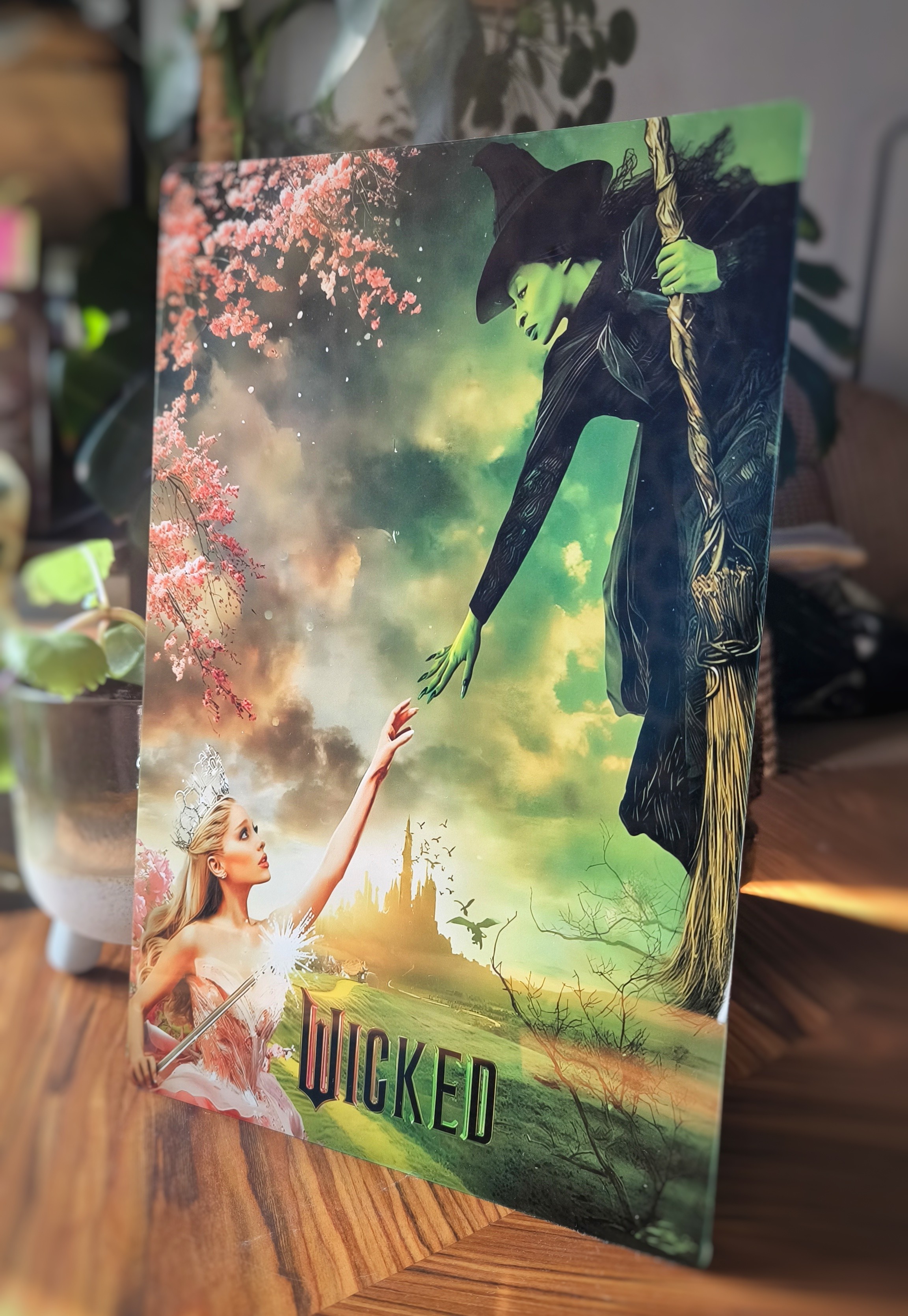 ¡Añade un toque mágico a tu espacio con esta placa metálica decorativa del emblemático póster de Wicked! Fabricada en aluminio de alta calidad, esta pieza mide 21 x 31 cms y captura a la perfección el icónico momento en el que Glinda y Elphaba entrelazan sus destinos mientras extienden sus manos, simbolizando su compleja y poderosa conexión. El diseño reproduce con detalles nítidos y vibrantes los contrastes de luz y oscuridad que definen esta inolvidable obra musical. Los tonos brillantes resaltan la dulzura de Glinda, mientras que los matices oscuros enmarcan la intensidad de Elphaba, creando una composición que es tan dramática como hermosa. Ligera y fácil de colgar, esta placa es ideal para decorar paredes, escritorios o rincones mágicos. ¡Es un must para los fans del musical que traerá un poco de Oz a tu vida diaria!